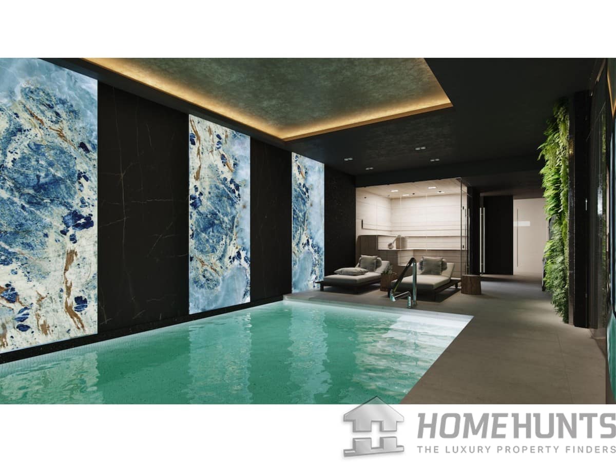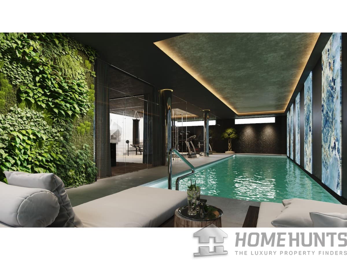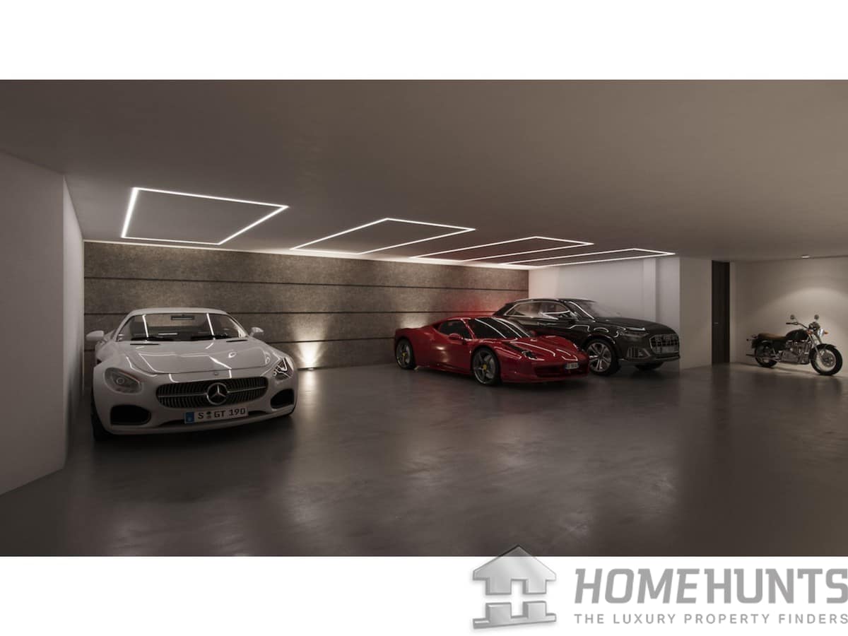 In the basement level there are 2 guest bedrooms with a shared bathroom, SPA area that includes sauna, Turkish bath and gym, and also there is a bar and cinema room, lounge area with indoor pool, garage for 4 cars, a wine cellar, an additional bathroom, laundry and a warehouse.