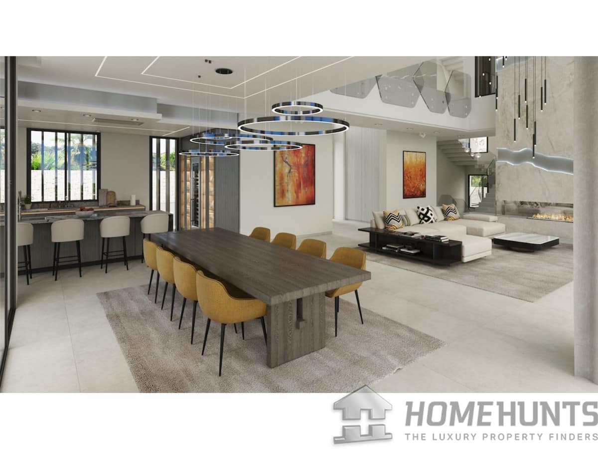 On the ground floor we can find the main entrance with lakes and tropical gardens that invites us to the main hall, that provides to the living room with fireplace that with open windows is converting into a unique space to the outside to the terrace with large lounge area with pool, then we can find a dining room and fully equipped kitchen with Gaggenau appliances, an additional kitchen area for domestic servants, on the same floor there are 2 bedrooms with en-suite bathrooms.