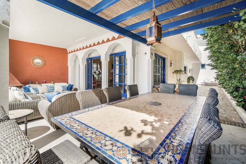 Located a mere five-minute stroll from the renowned Puente Romano, this gem of a home offers 676 m2 of unique living space with stunning vine covered walkways and patios sheltering chic guest bedrooms all decorated in a classical and elegant traditional style, each with its own entrance and en-suite facilities.