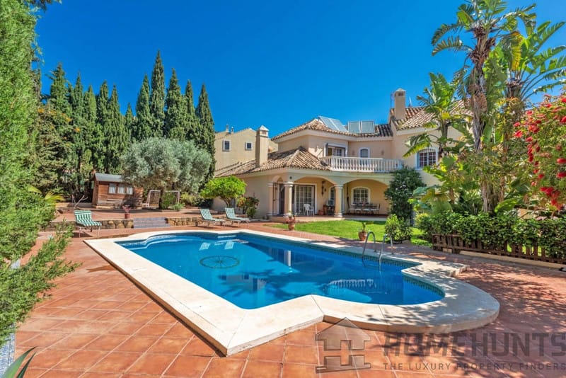 Beautiful villa in the Xarblanca area, close to all amenities and a 5-minute drive from the center of Marbella. It comprises a 1,100 m2 plot with a very large garden surrounded by plants and palm trees throughout the house, and a large swimming pool. The house itself is 412 m2 and is distributed as follows: