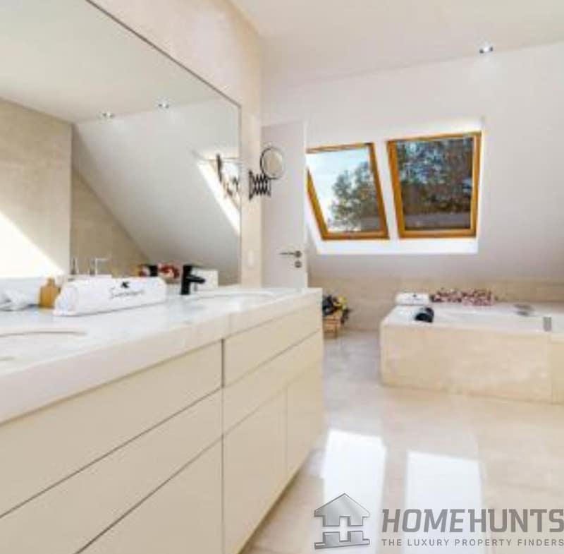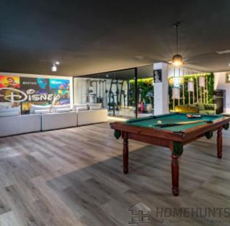 Additional features include a cinema room, games room, gym, wine cellar, and a centralised sound system throughout the villa, offering a premium level of comfort and entertainment. The property also benefits from air conditioning, central heating, an alarm system, surveillance cameras, and secure access.