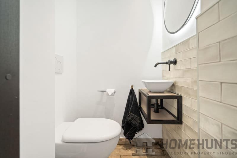 The main level welcomes you with an inviting entrance hall leading into a luminous open-plan kitchen, dining and living area with fireplace and a cosy snug alongside a guest toilet.