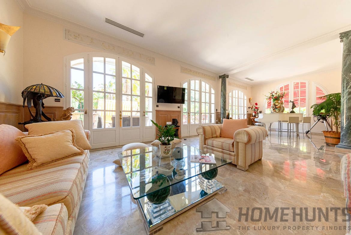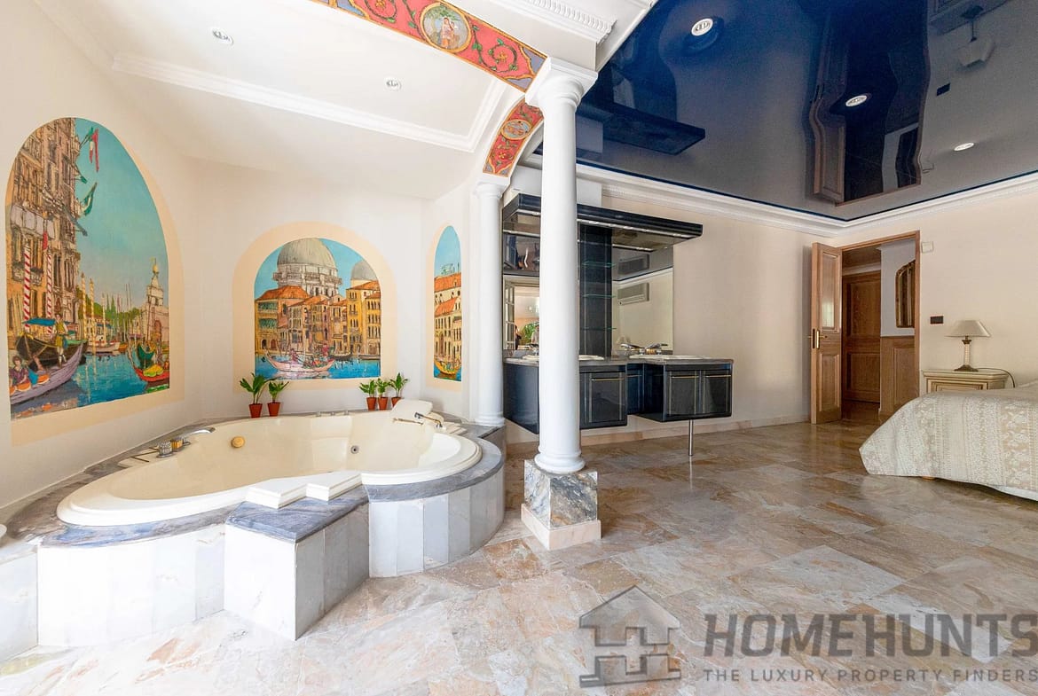 – Lower floor: 4 bedrooms, two of which are master suites with en-suite bathrooms/Jacuzzi. The other bedrooms measure around 12 m2, with a shower room and a bathroom. A large glazed lounge with bar area overlooking the swimming pool.