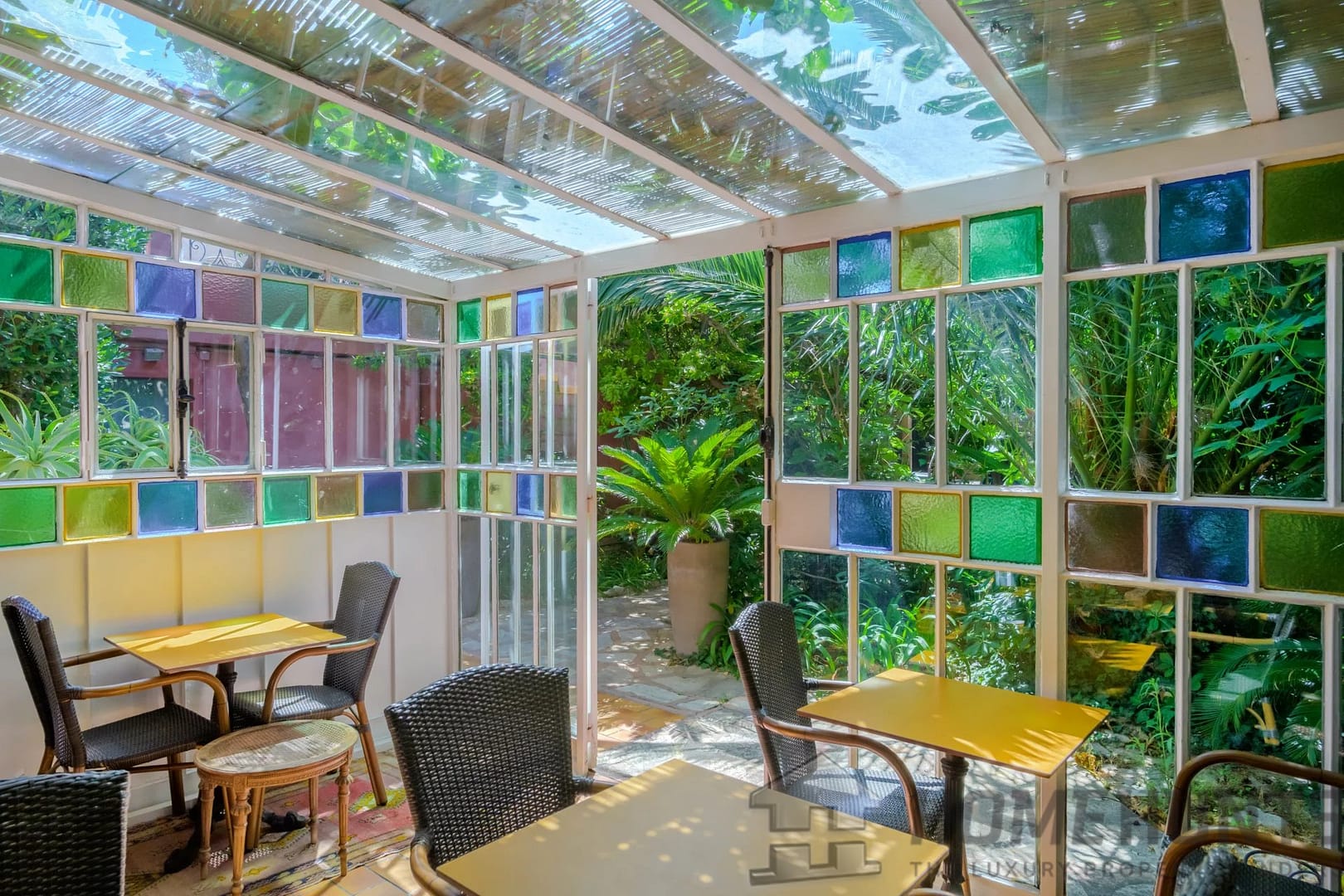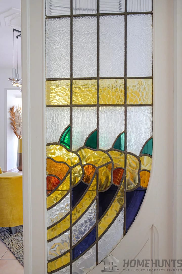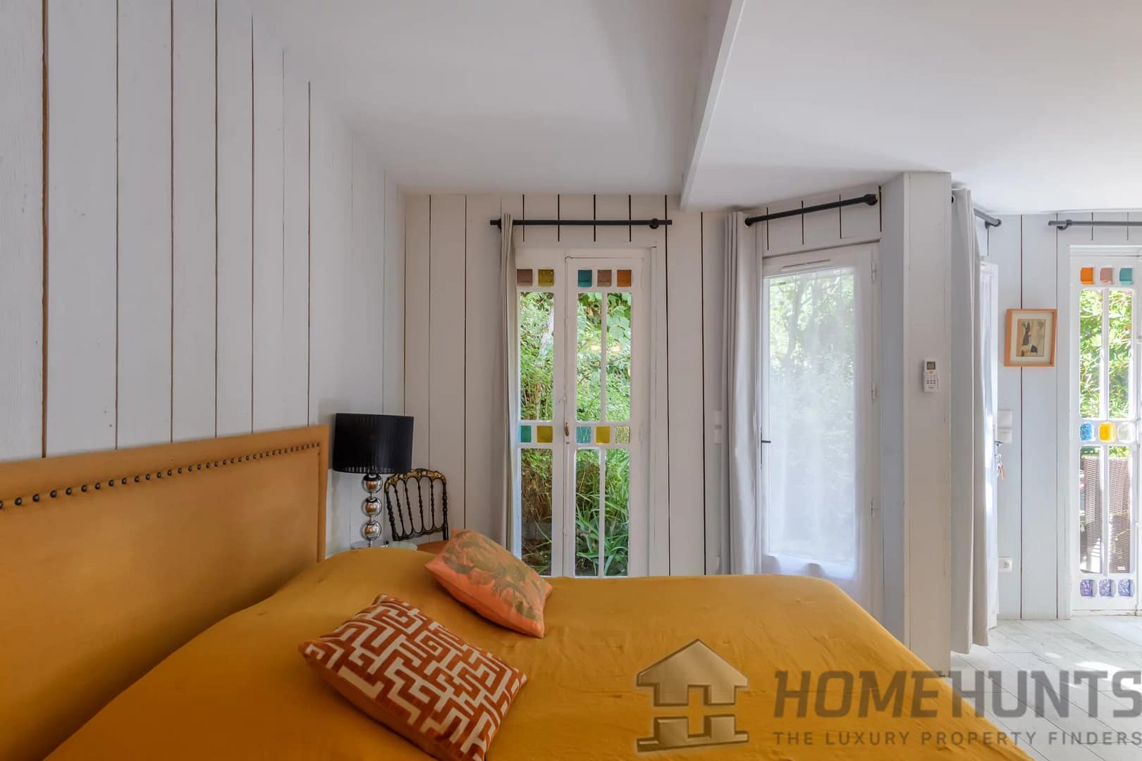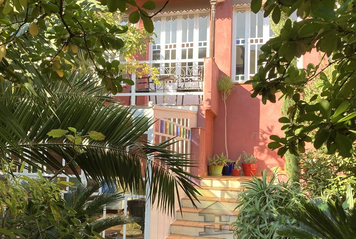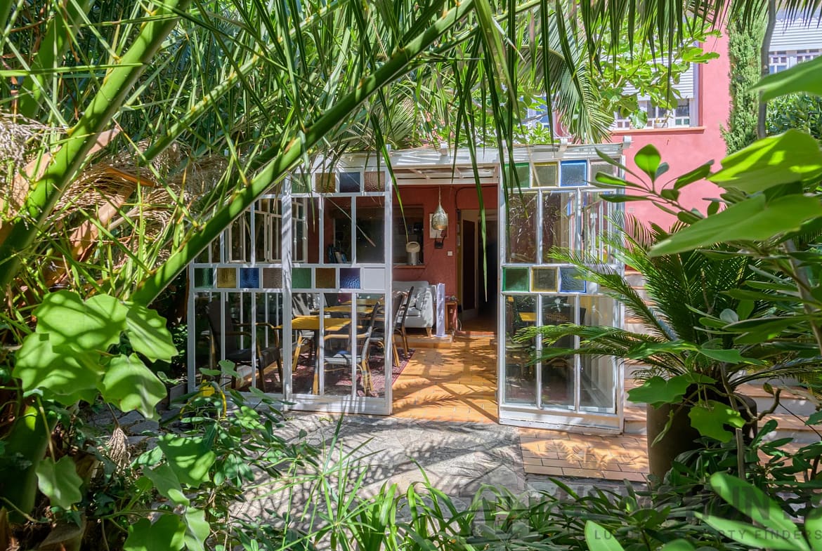 A highly refined ‘favourite’ house where each room has its own identity. A blue summer living room overlooking the garden and its multicoloured glass roof. A winter living room in warm colours with its art deco fireplace. A kitchen with a view of the Calanques, connecting the living rooms. A small TV room and an office. Colourful glasswork features in several rooms of the house. A black and white bedroom with its own bathroom on this first level. Four other bedrooms, each with its own colour scheme, bathroom and small private terrace.