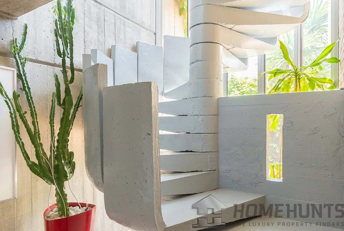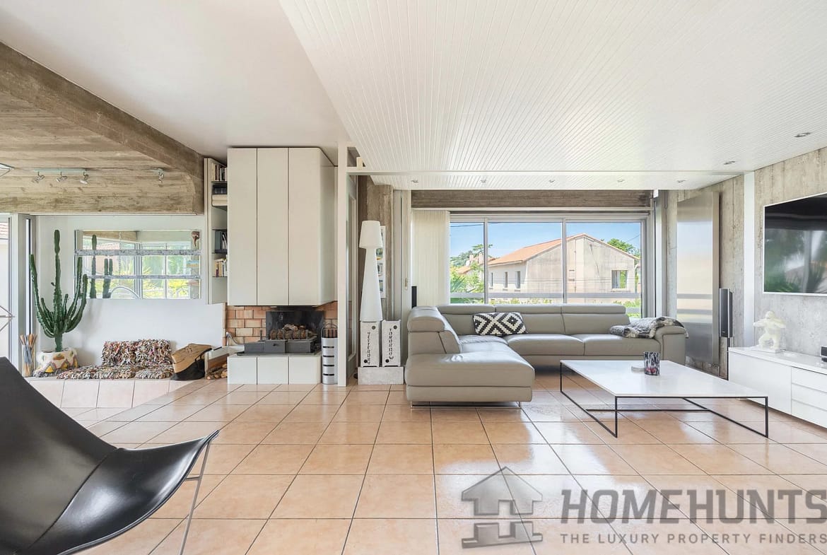 Built in beton banche, the residence harmoniously blends modernist architecture with nature. Bathed in natural light, its triple living spaces open seamlessly onto the outdoors, creating an atmosphere of elegance and serenity.