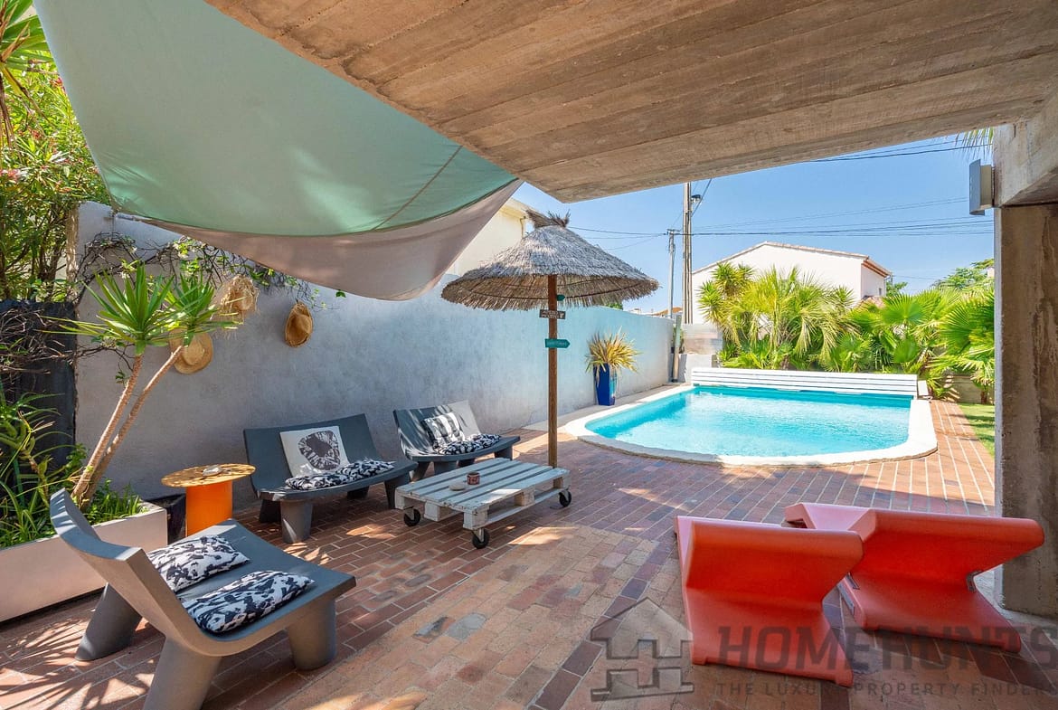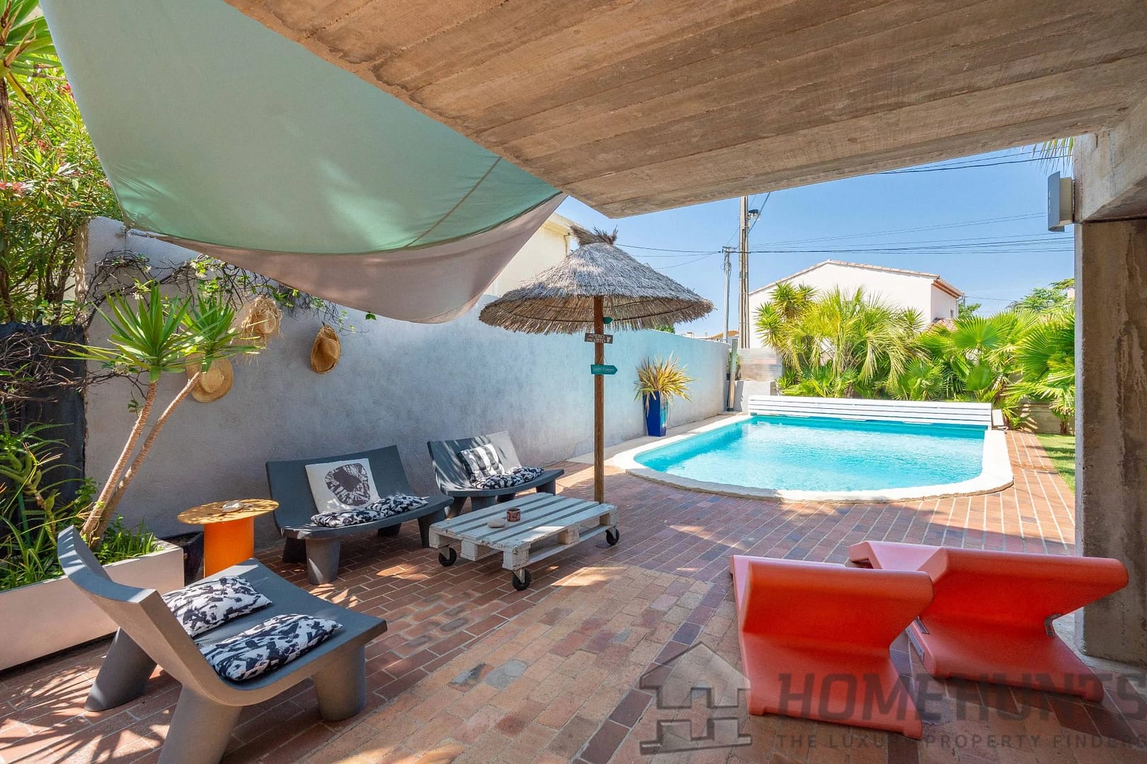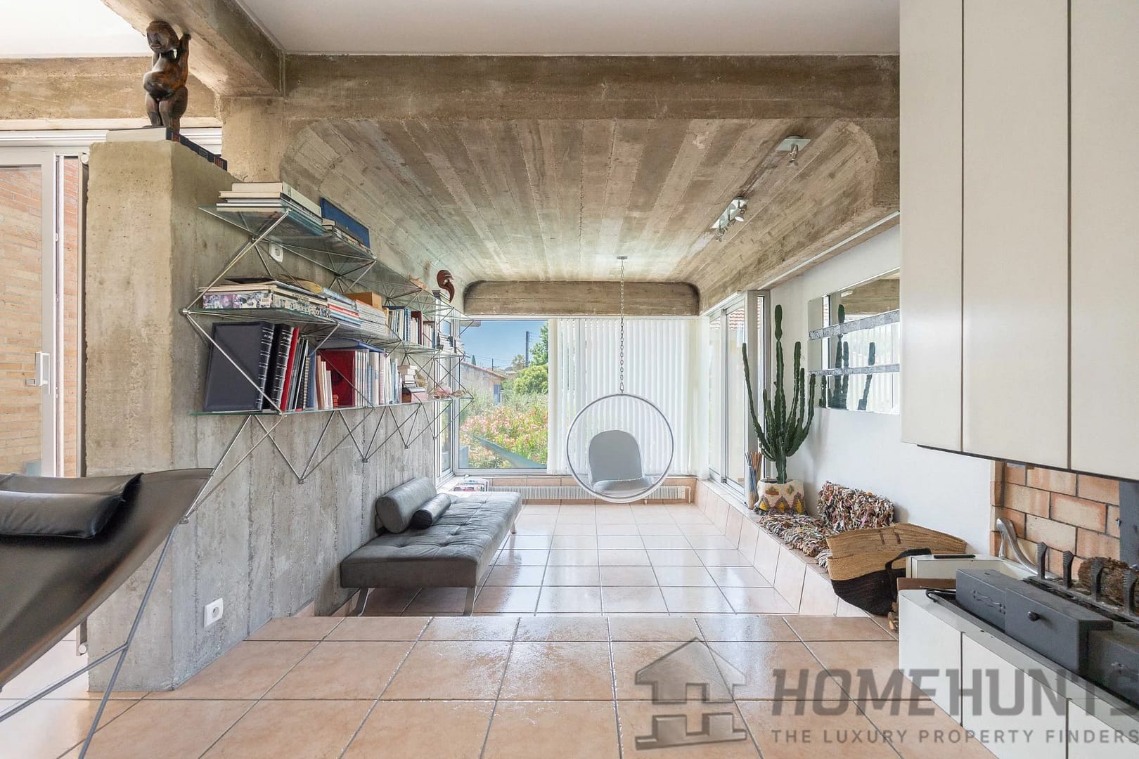 Nestled in the heart of the village core of Montolivet, within a peaceful residential enclave close to shops, schools, and public transport, this exceptional architect-designed villa by Andre Stern offers 180 m2 of living space surrounded by a lush 400 m2 garden with swimming pool.