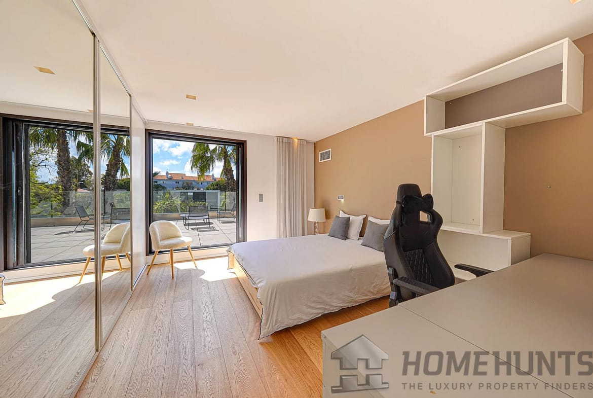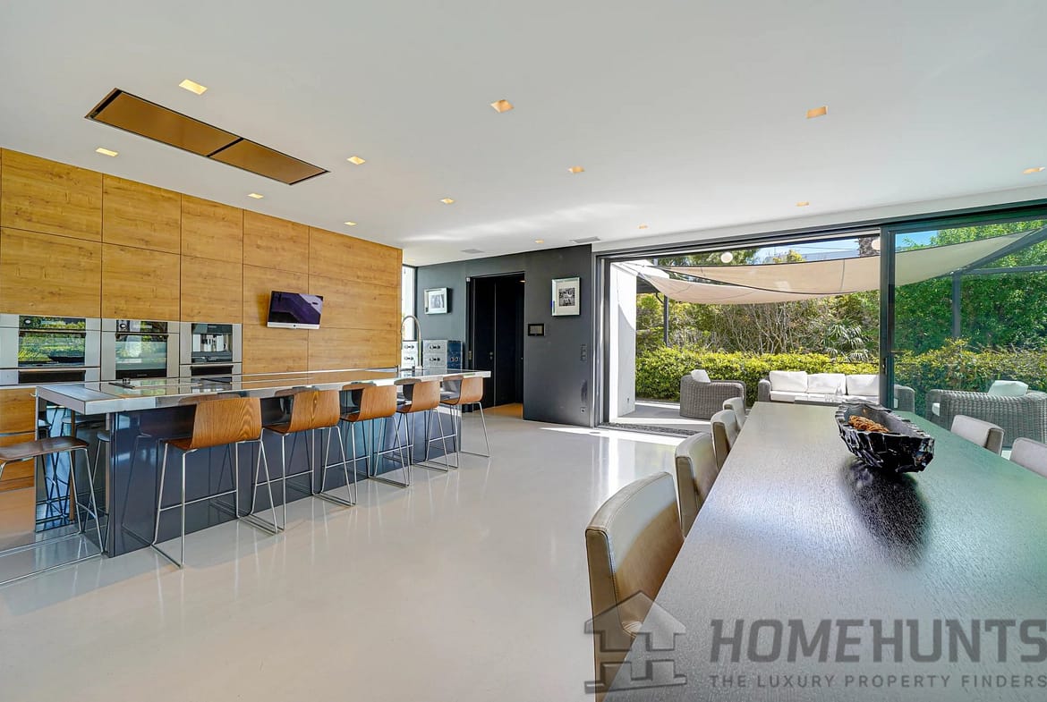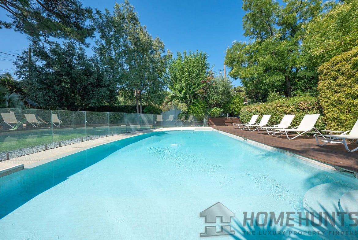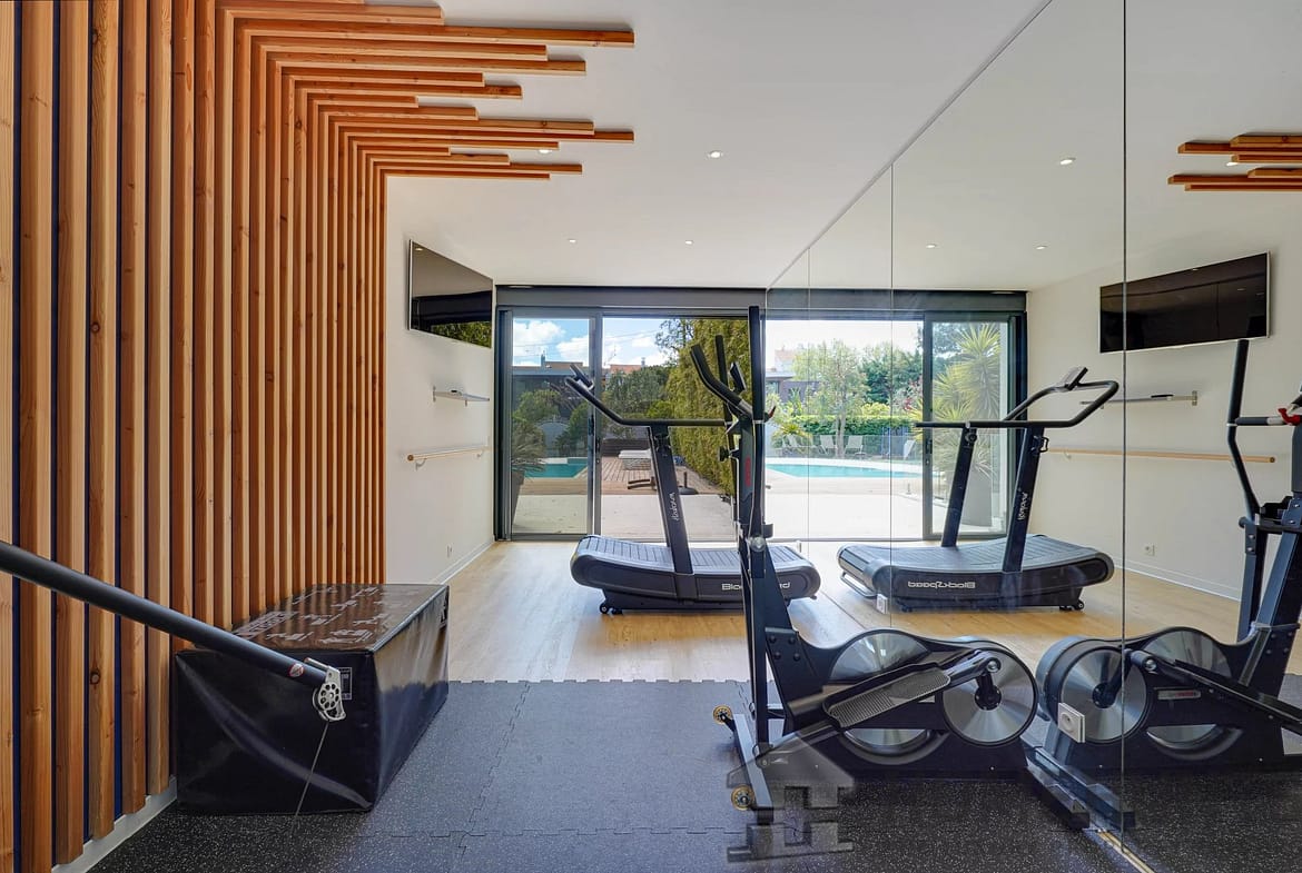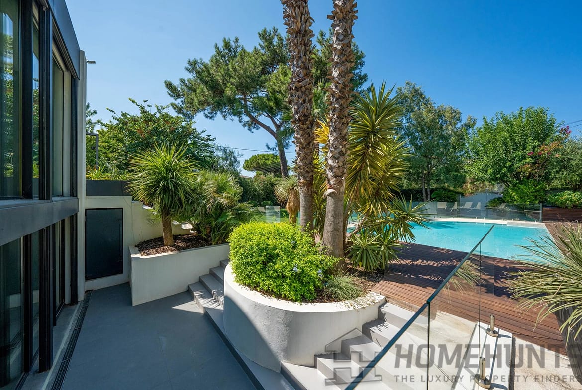 Outside, the landscaped garden is a true haven, with carefully structured paths, manicured flowerbeds, an immaculate lawn, a teak terrace, a separate gym, and a 10 x 6 m heated salt-water pool, secured by glass railings.