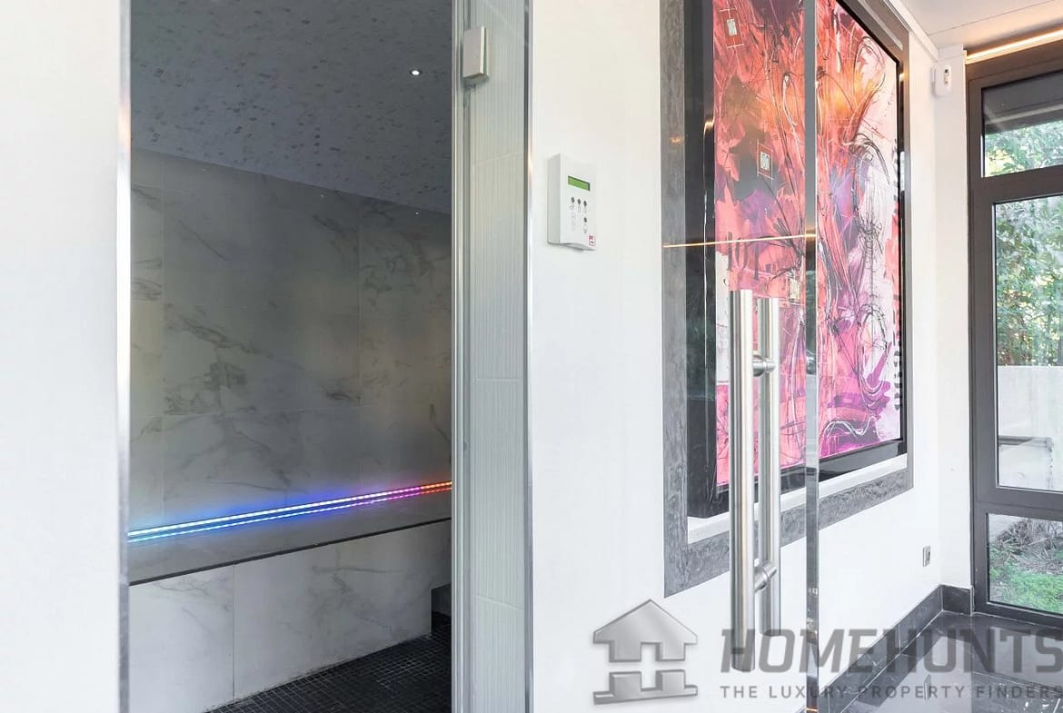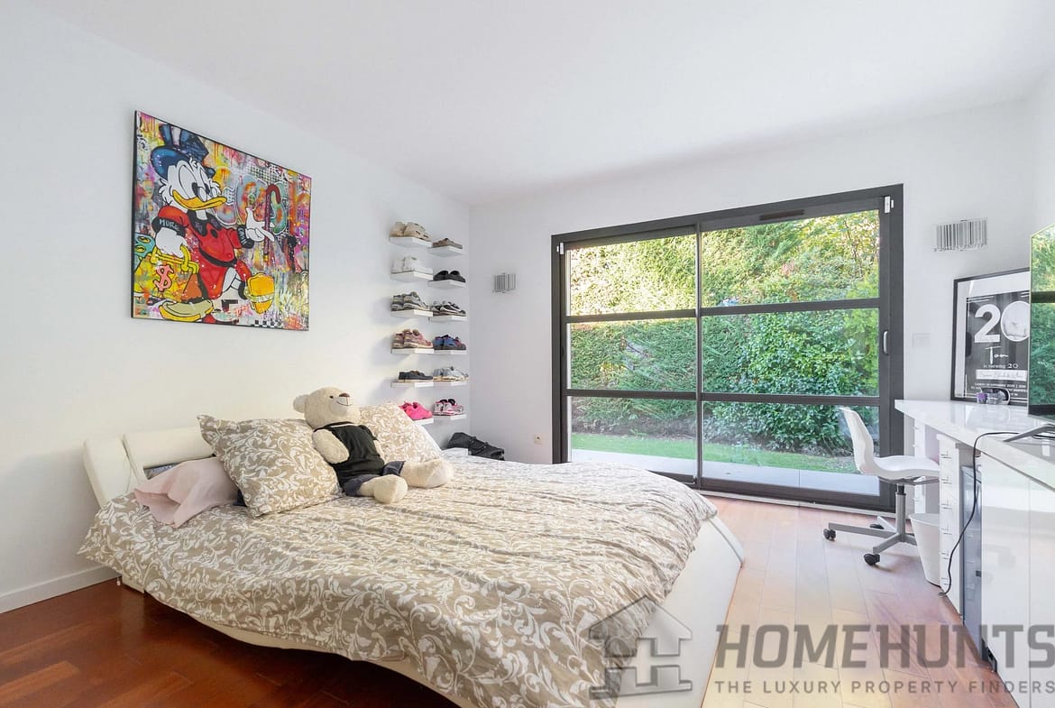 From the moment you enter, the generous volumes, natural light, and quality of materials set the tone: a vast, bright living room with a modern fireplace, opening fully onto the outdoors. The semi-open, custom-designed kitchen combines functionality with premium finishes.
