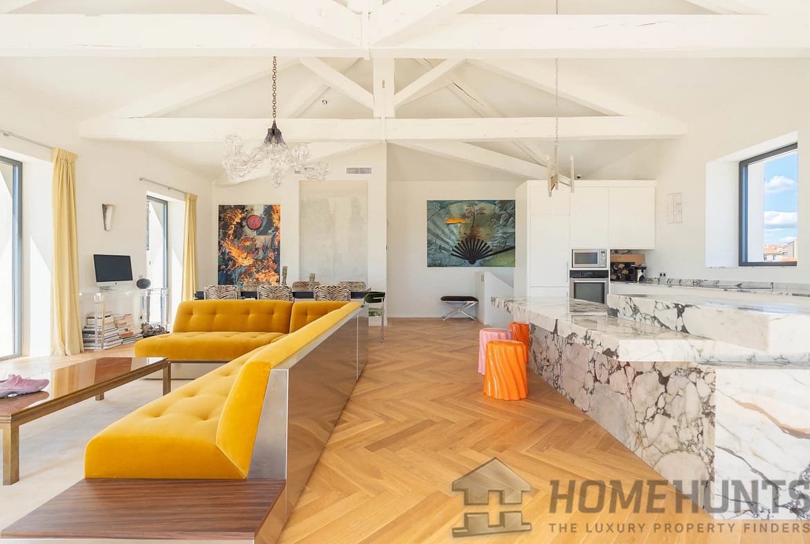 The property features a majestic living area offering a breathtaking panoramic sea view, three suites, a gym (easily convertible into a fourth bedroom), a hammam, a swimming pool, and an outdoor kitchen.