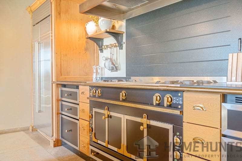 Top-of-the-line amenities in every room. Gourmet kitchen with La Cornue cooking piano, dining room, living room overlooking the landscaped garden.