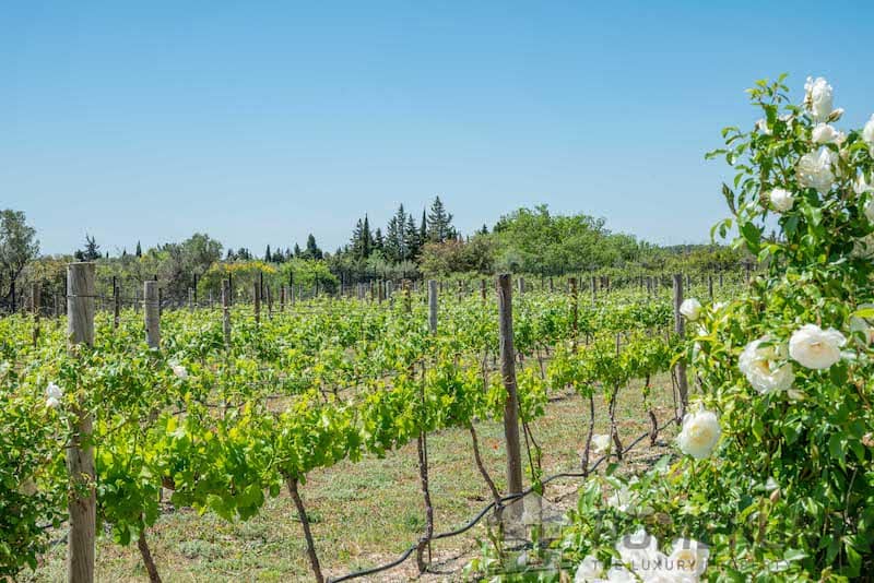 Exceptional landscaped garden. Rose garden, olive trees, lavender, vines. Terraces, fountain,