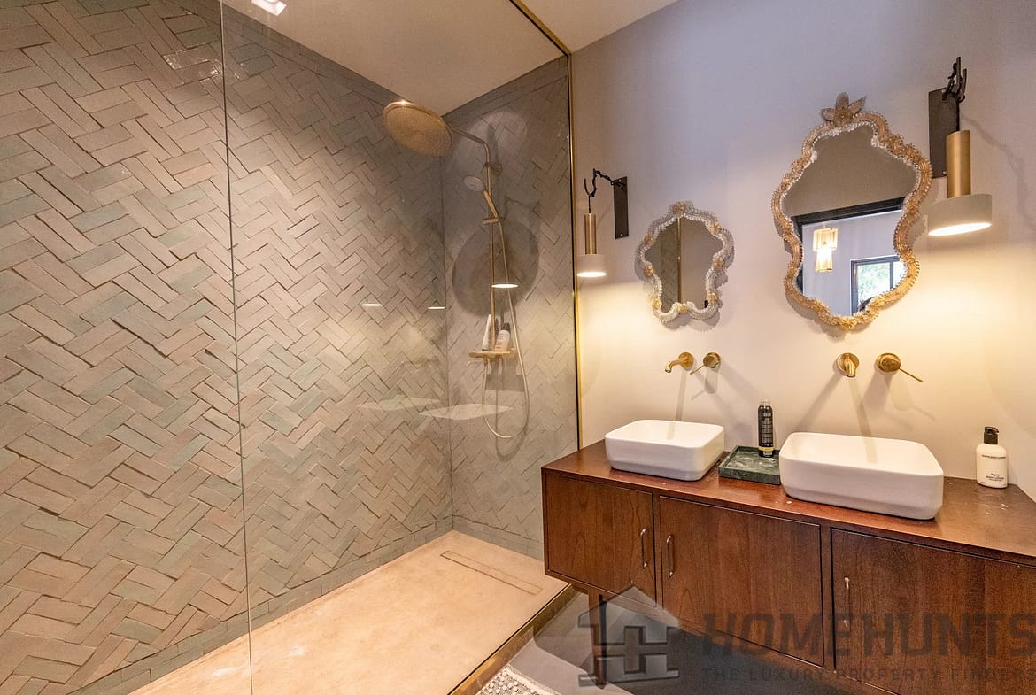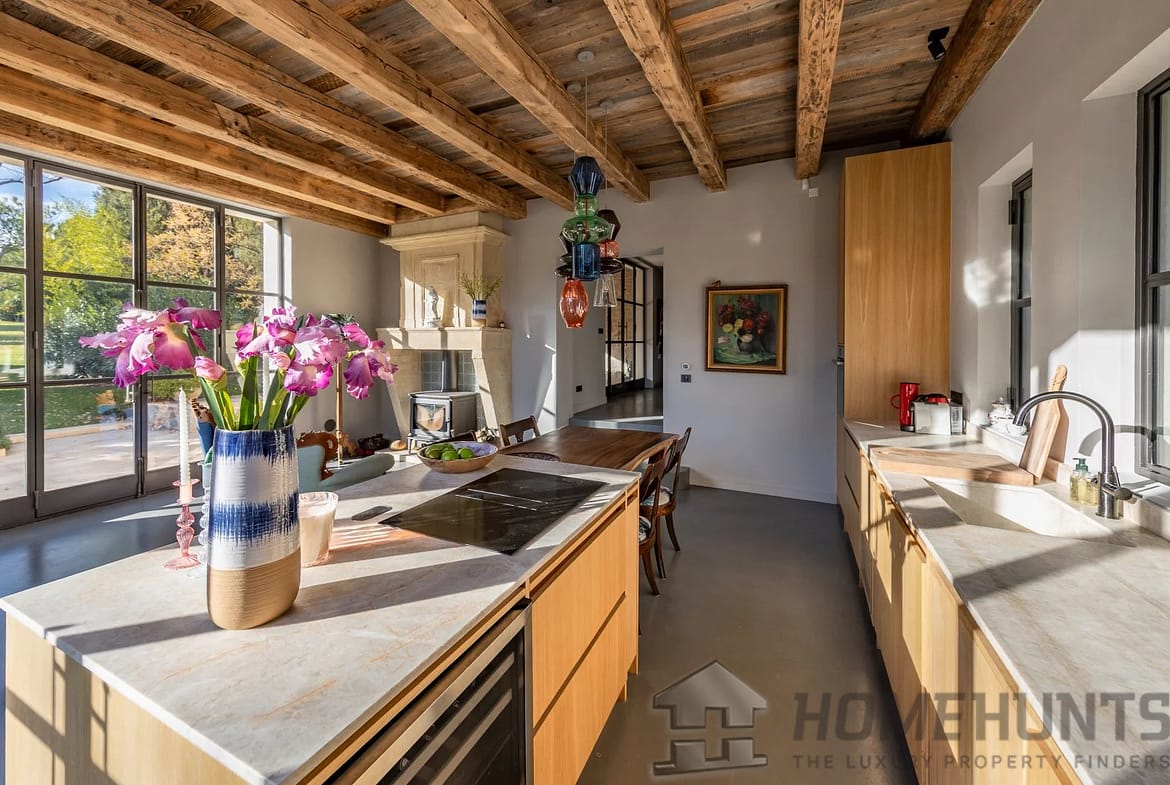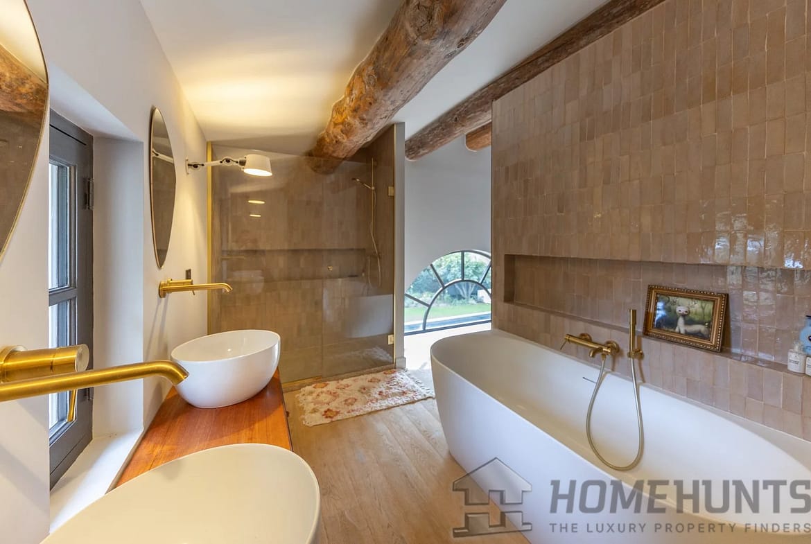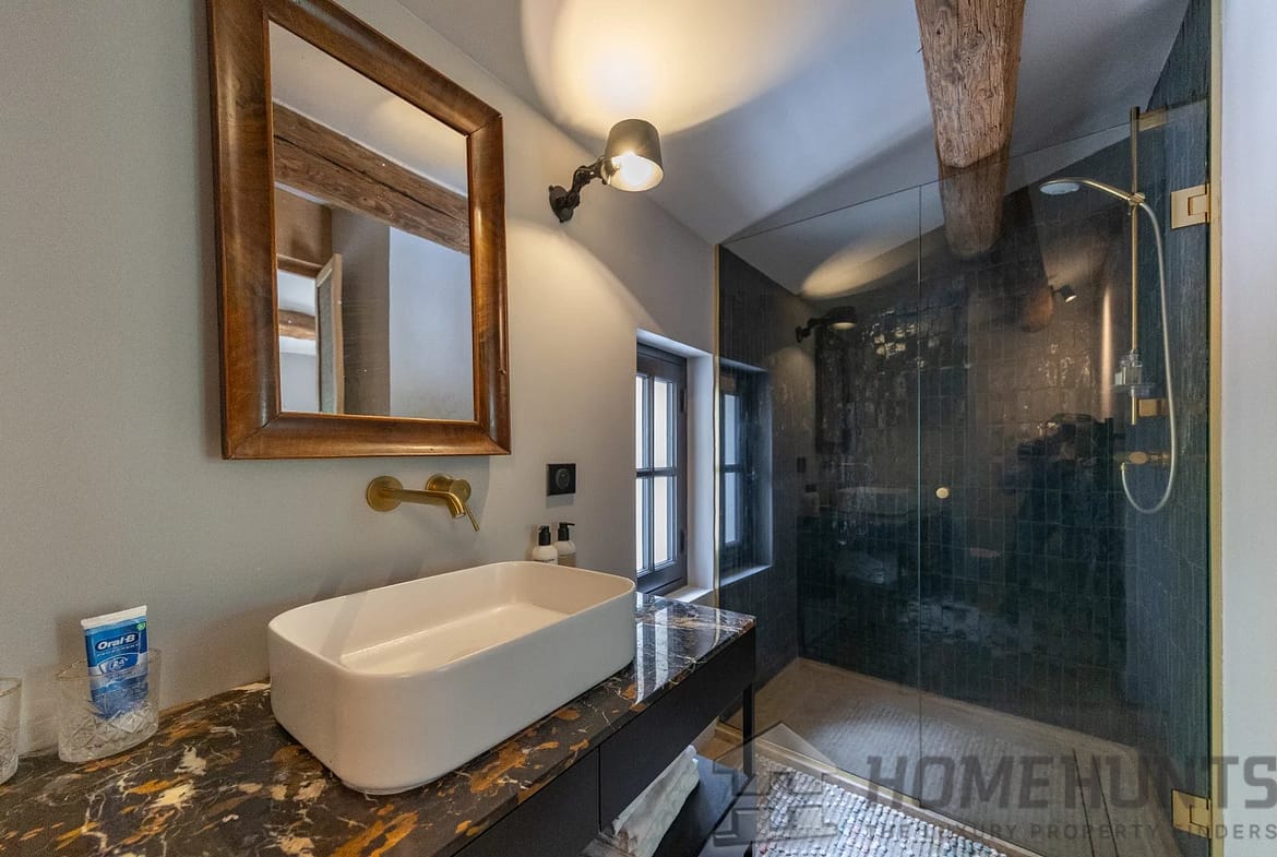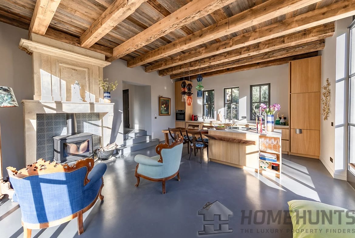 The second house, recently renovated to the very latest standards, offers all modern comforts and top-quality fittings. Here the accommodation comprises an impressive cathedral-style living room encompassing kitchen, dining room and sitting room and 3 en-suite bedrooms.