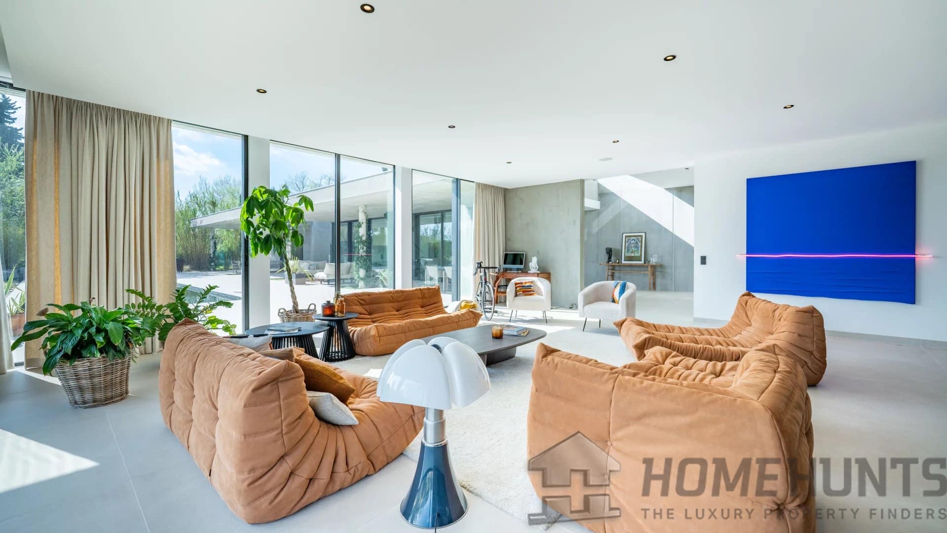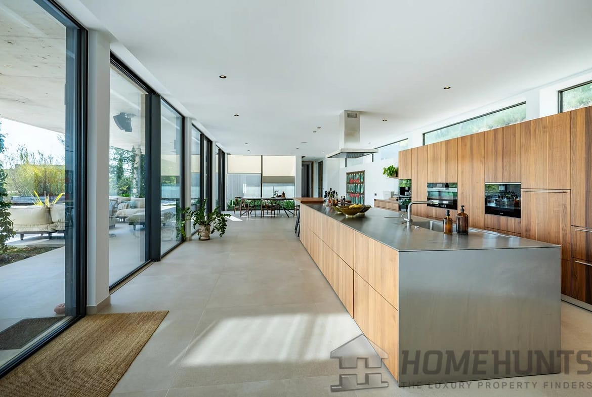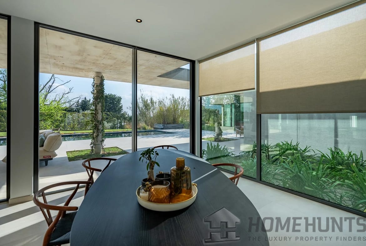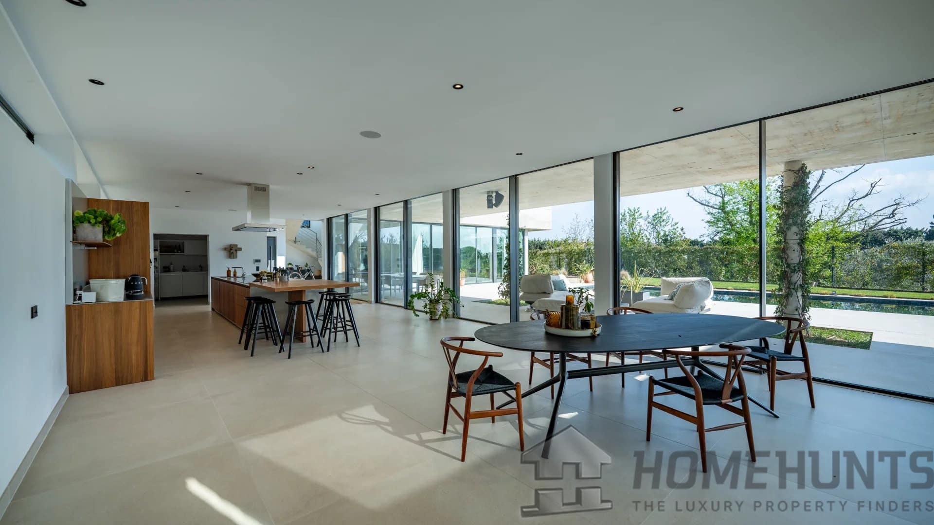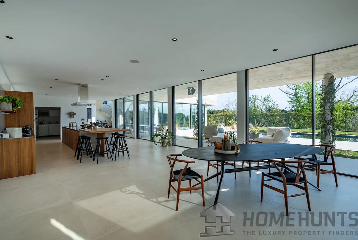 With high ceilings, full height sliding bay windows, a beautifully crafted and excellently equipped kitchen (Bulthaup) and a choice of spacious reception rooms, the comfortable and convivial interior is bathed in sunlight. From here there is an open invitation to step outside and enjoy the expansive terrace and pool area.