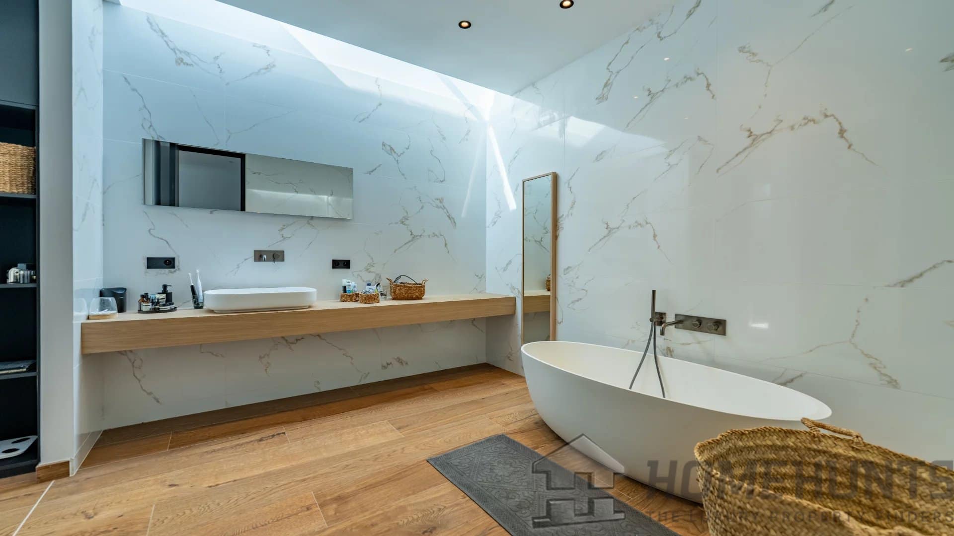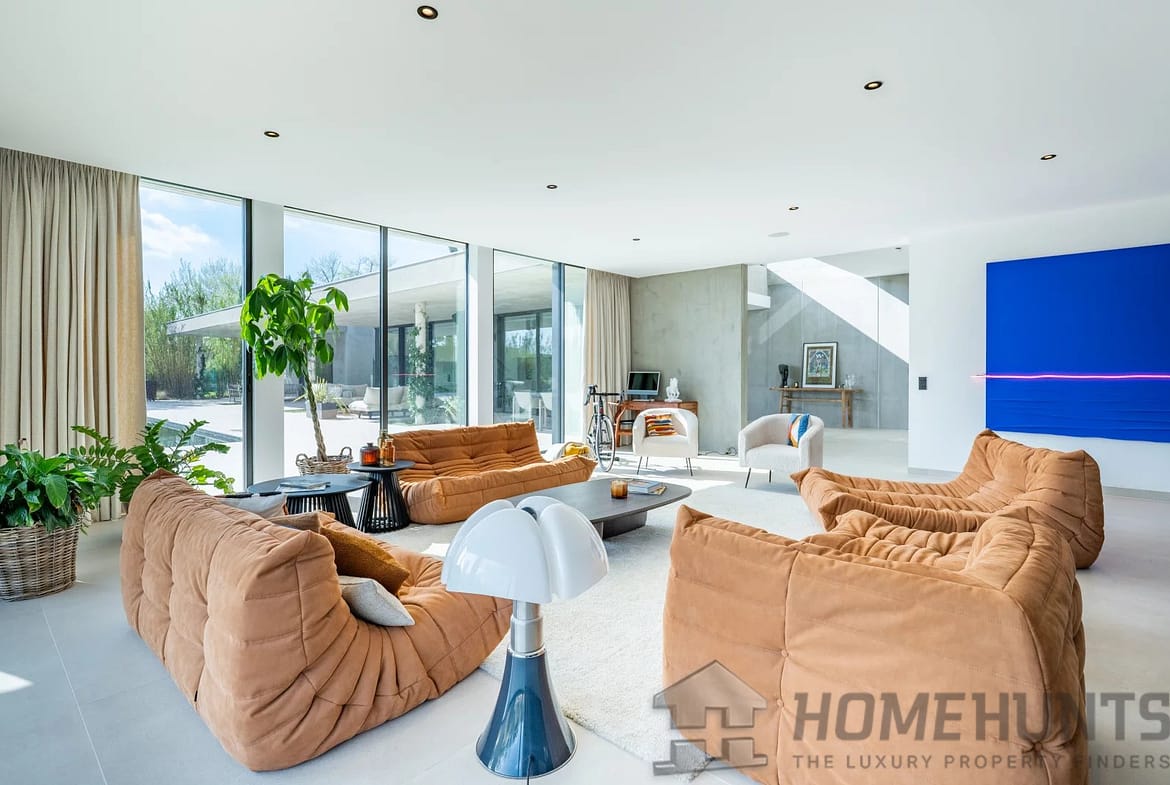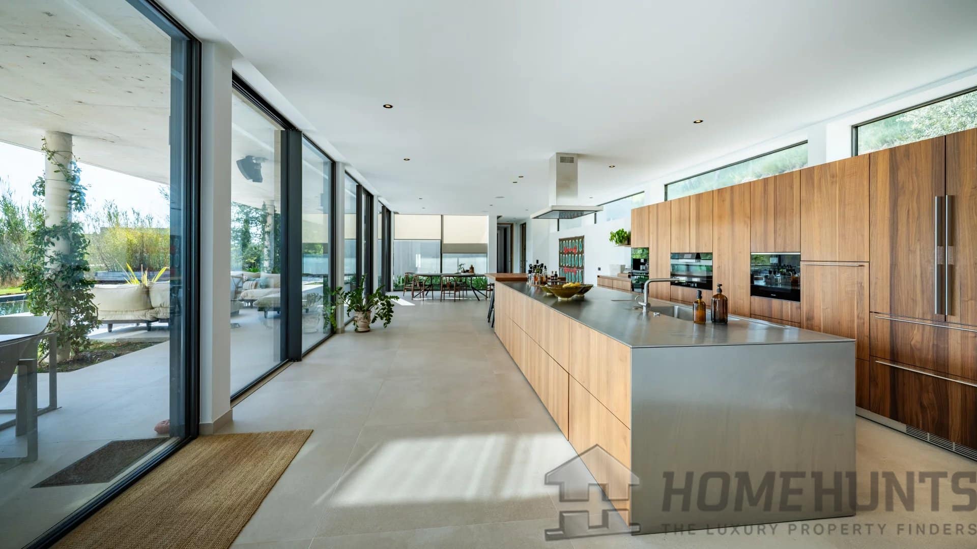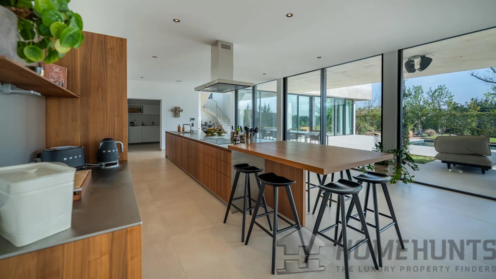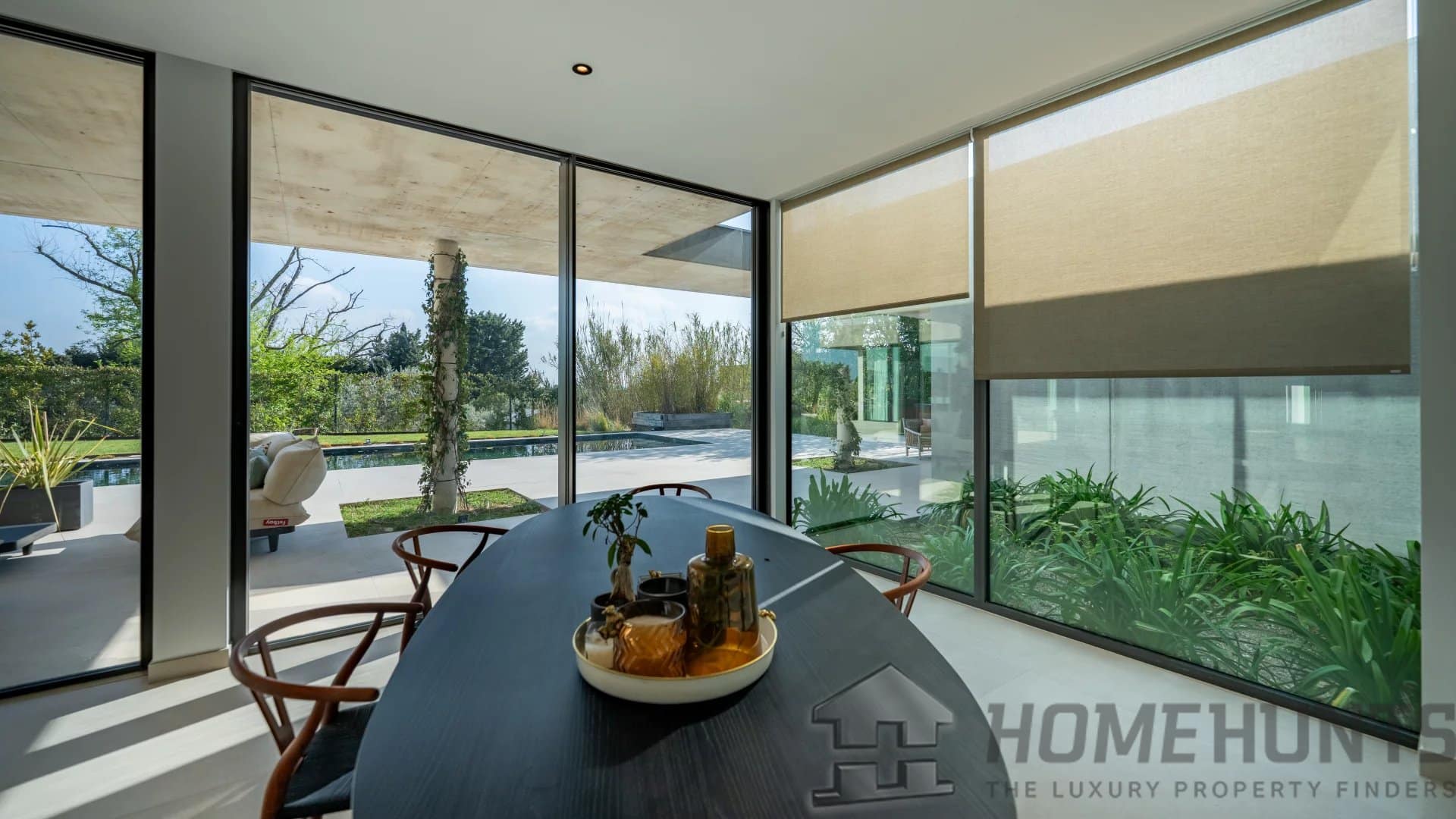 With high ceilings, full height sliding bay windows, a beautifully crafted and excellently equipped kitchen (Bulthaup) and a choice of spacious reception rooms, the comfortable and convivial interior is bathed in sunlight. From here there is an open invitation to step outside and enjoy the expansive terrace and pool area.