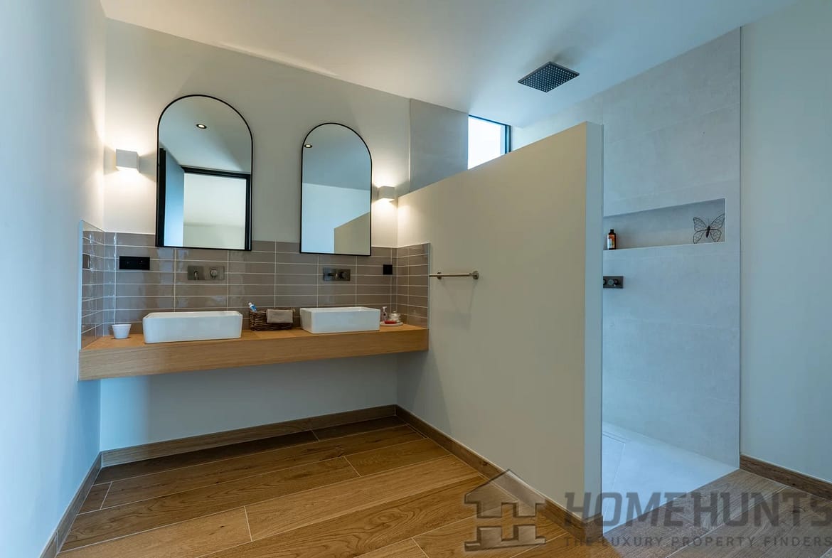 There are four beautifully appointed bedroom suites. The master suite is on the ground floor and boasts a double dressing room, a huge bathroom with two showers and a separate study.