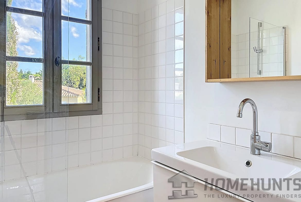 Upstairs, a beautiful staircase in hand-crafted terracotta leads to a landing with a master suite with shower room and dressing room, two other bright bedrooms and a bathroom. The floors are also in terracotta, and the many windows (on the east and west facades) ensure that light flows in throughout the day.