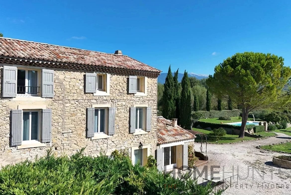 Just a few steps from its charming Proveníçal village, this authentic farmhouse offers an idyllic setting and a majestic view of Mont Ventoux. The true spirit of Provence reveals itself through the stone, the light, and the surrounding landscapes.