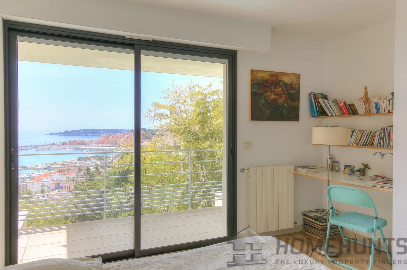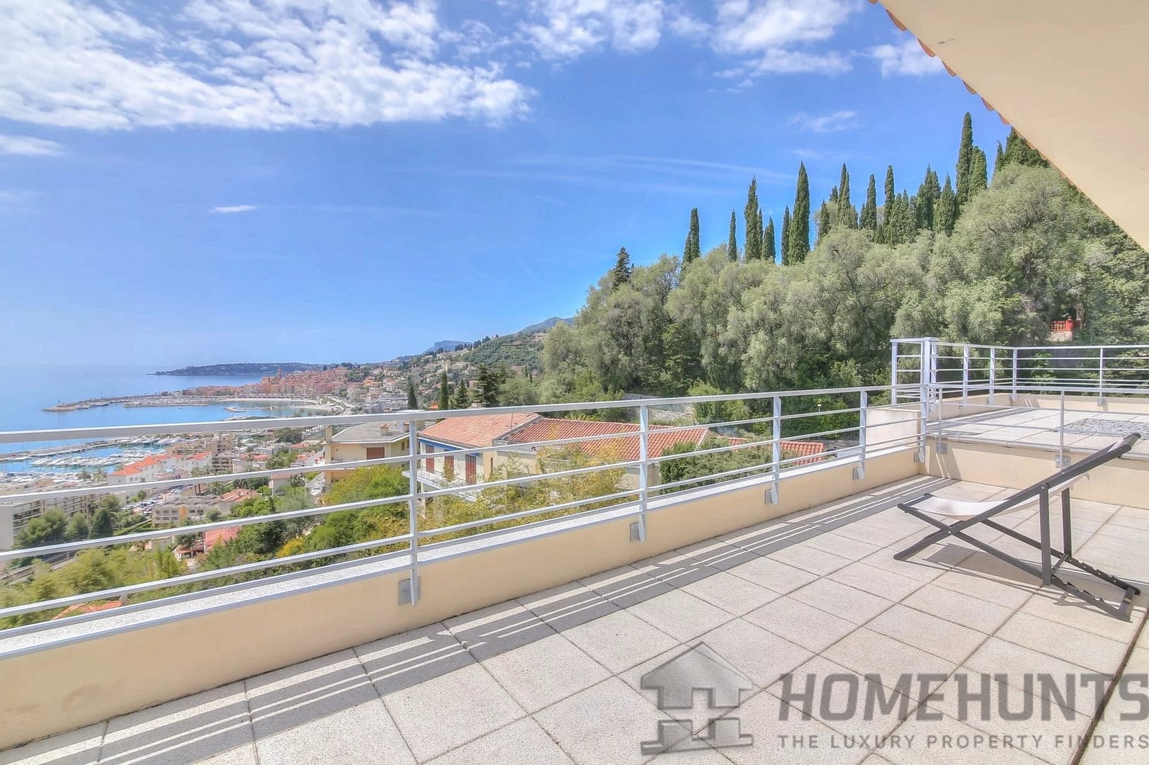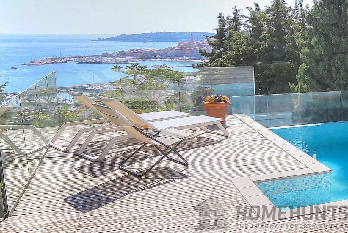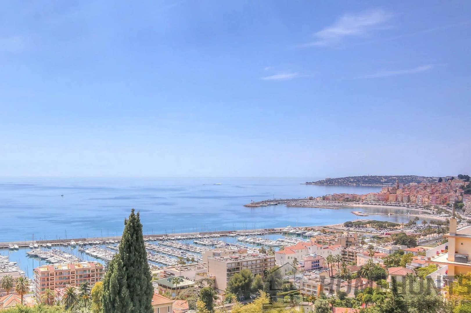 Superb contemporary and bright south-facing villa with stunning views of the Mediterranean Sea and the old town of Menton.