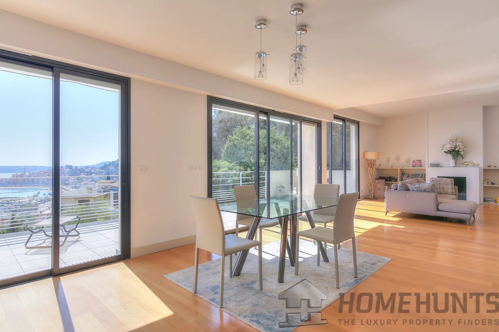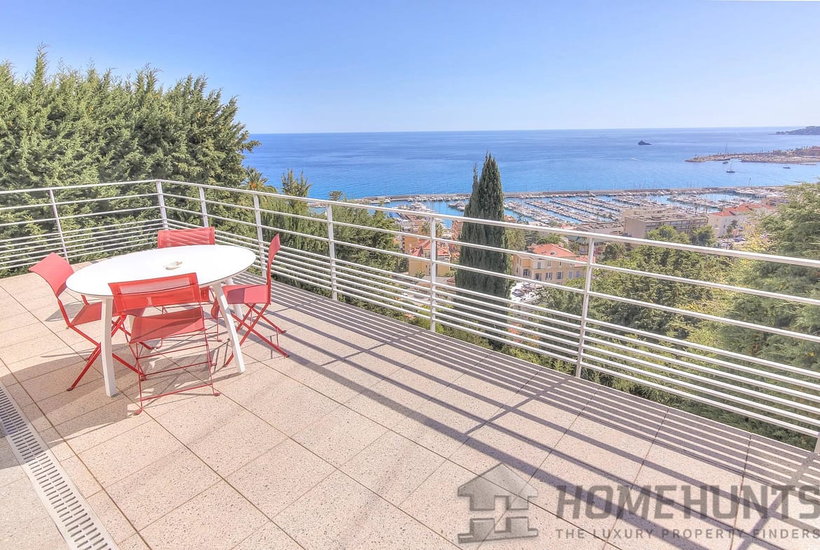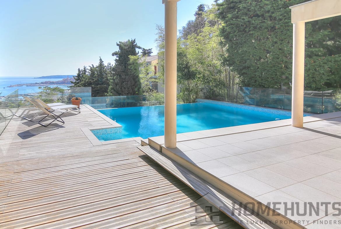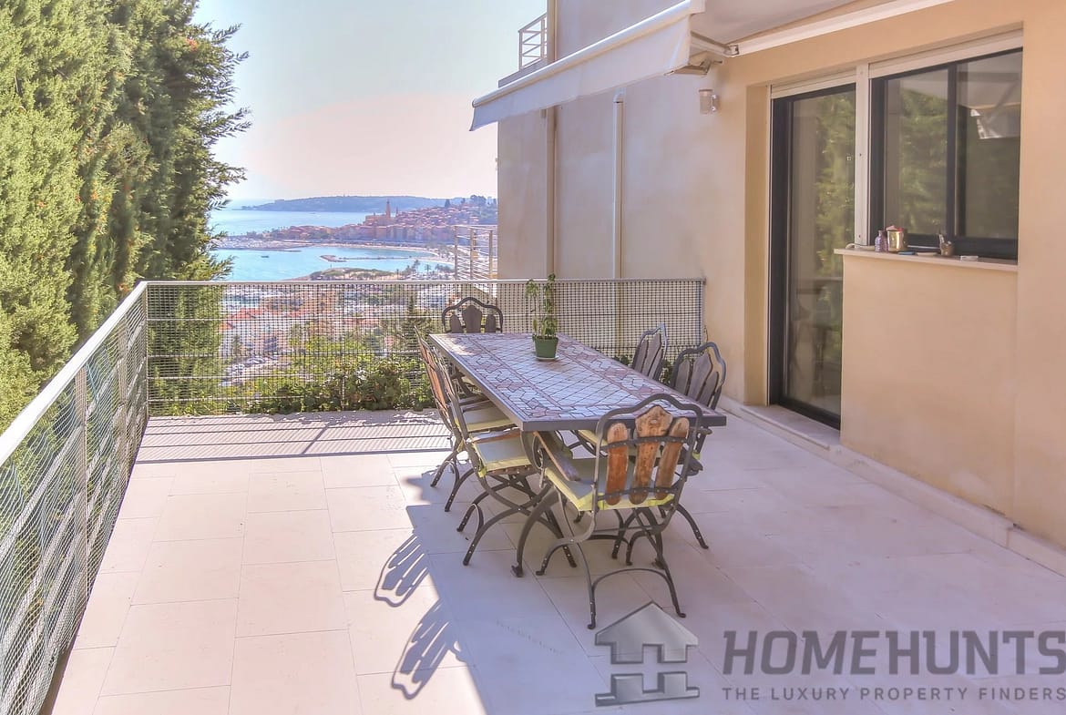 Superb contemporary and bright south-facing villa with stunning views of the Mediterranean Sea and the old town of Menton.