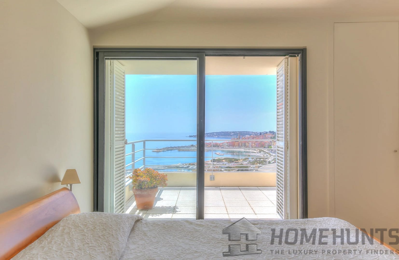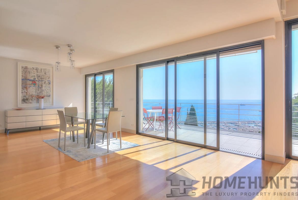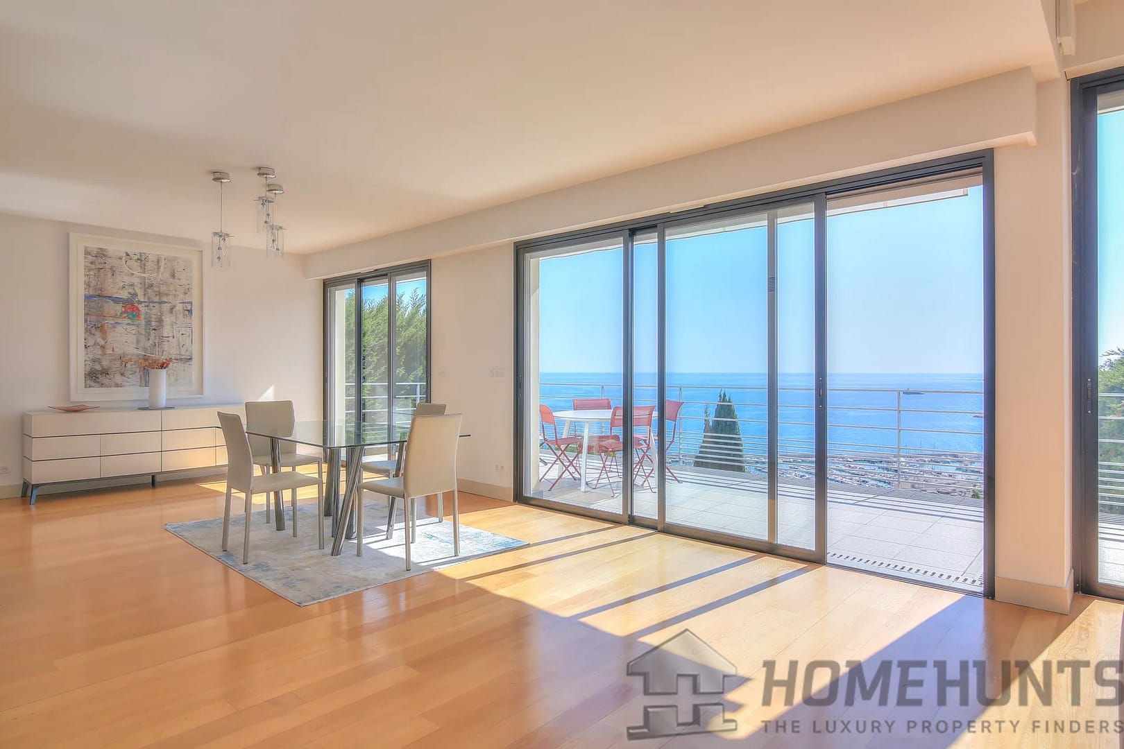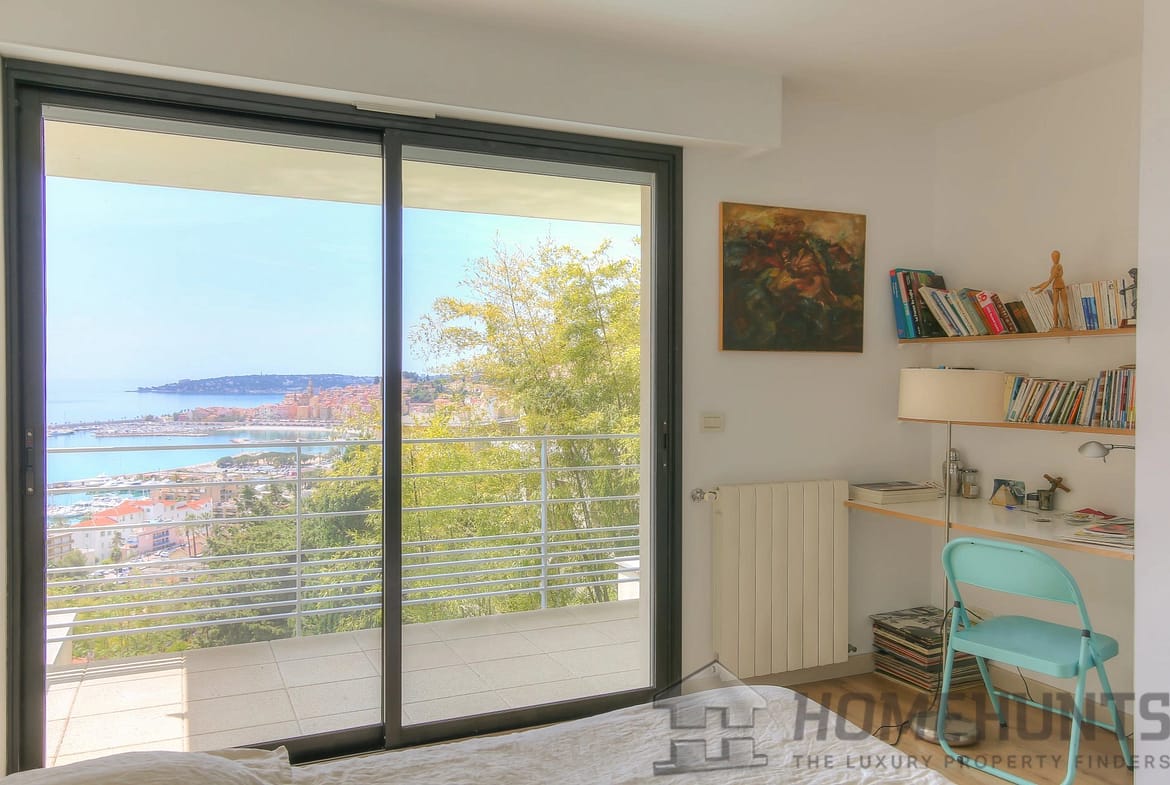 Superb contemporary and bright south-facing villa with stunning views of the Mediterranean Sea and the old town of Menton.