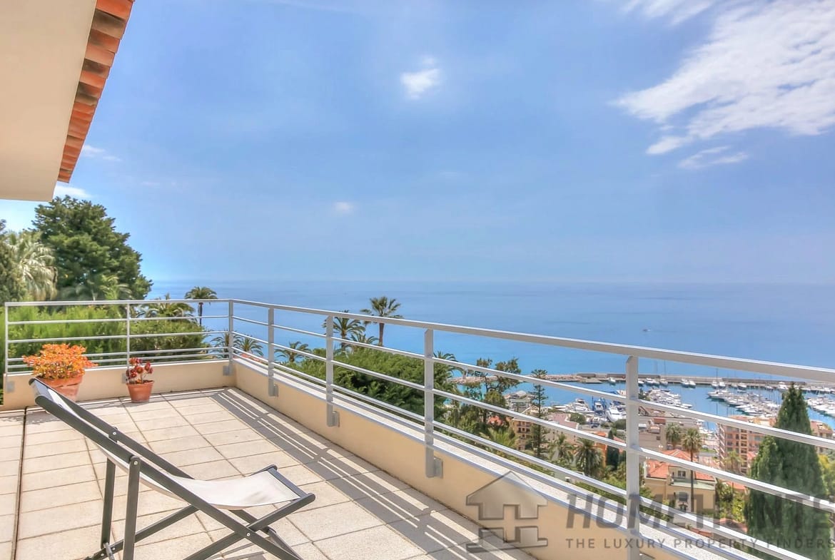The entrance floor consists of an entry hall with guest toilet, a 53 m2 double reception room with dining area and a fireplace, large bay windows opening onto a spacious terrace with spectacular views over the sea and the old town of Menton. Also on this floor, a separate kitchen with dining area and access to another terrace with beautiful views.