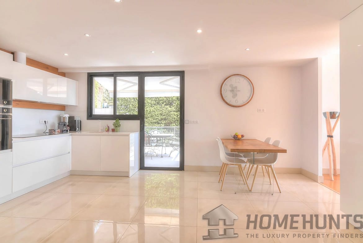 The upper floor consists of a large home office, a master bedroom with en-suite bathroom, as well as large bay windows opening onto terraces with the same spectacular views.