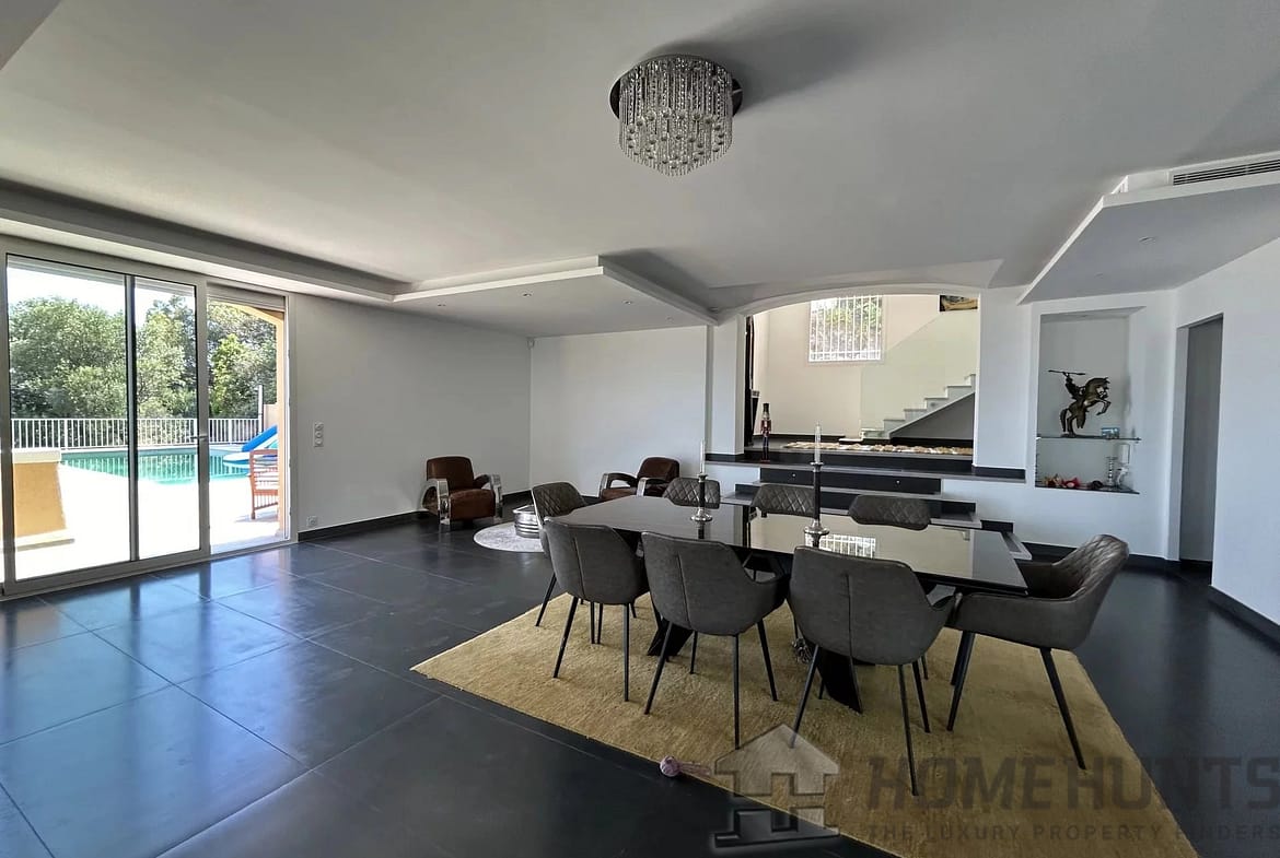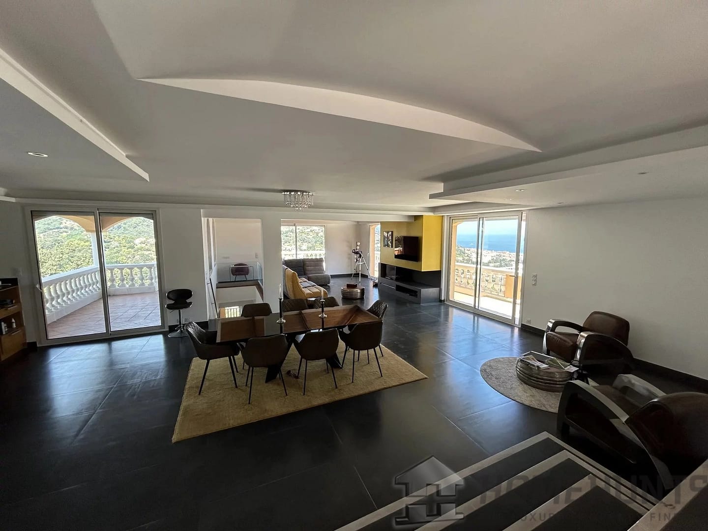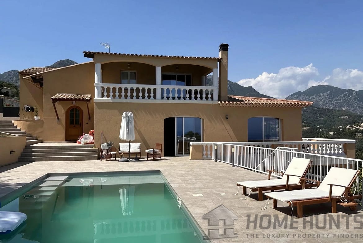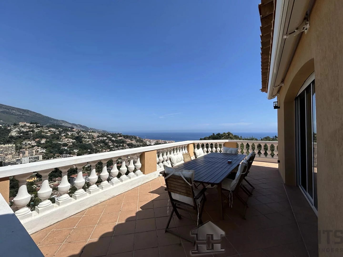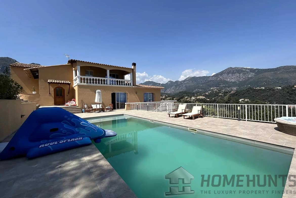 In a sought-after residential area of Menton, beautiful family sized sea view property set in 2,152 m2 of gardens with heated swimming pool and panoramic sea and mountain views.