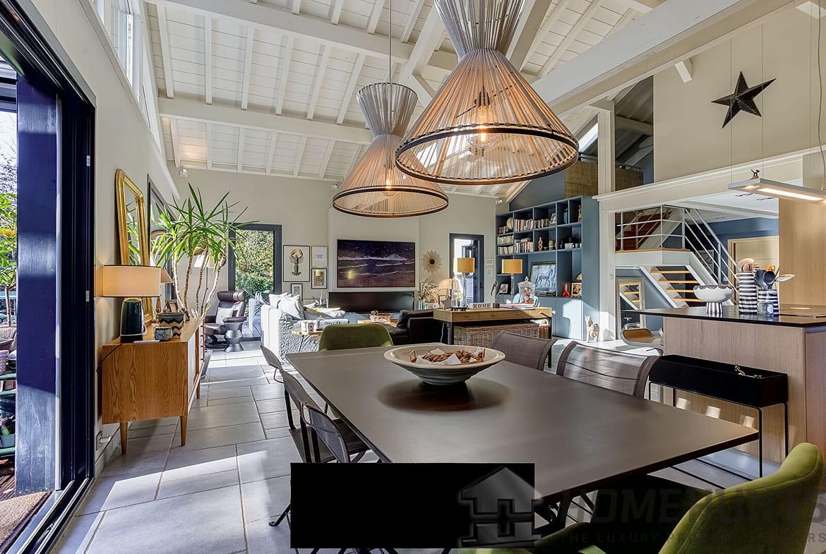 The property offers a true haven of peace, ideal for family life. On the ground floor, the entrance hall gives access to a bright living room offering spaces such as the lounge, the dining room and a fully fitted and equipped open kitchen. Sliding bay windows let in light and extend the spaces onto the garden and the terrace. Still on one level, a beautiful master suite has a large bathroom with shower and bathtub, a separate dressing room and a bedroom overlooking the outside through the bay window. An office and a laundry room complete this level.