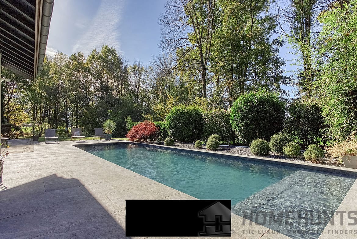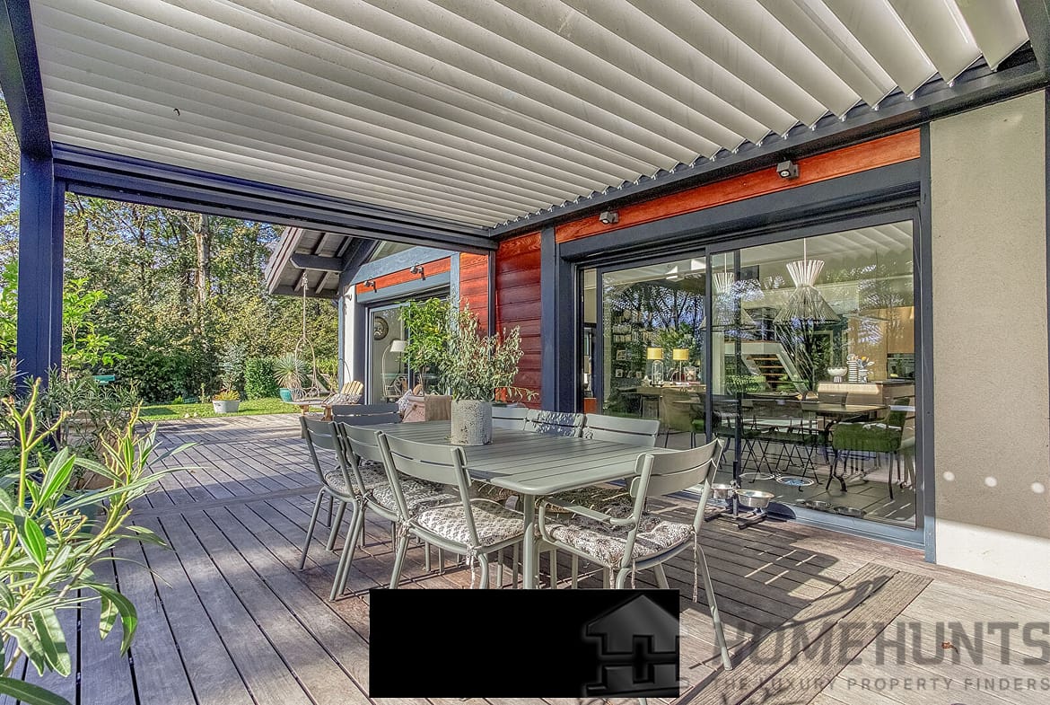 Upstairs, three bedrooms are judiciously arranged, completed by a shower room and a mezzanine. The exterior designed for relaxation, offers its wooded garden accompanied by two spacious terraces and a beautiful swimming pool for hot summer days out of sight.