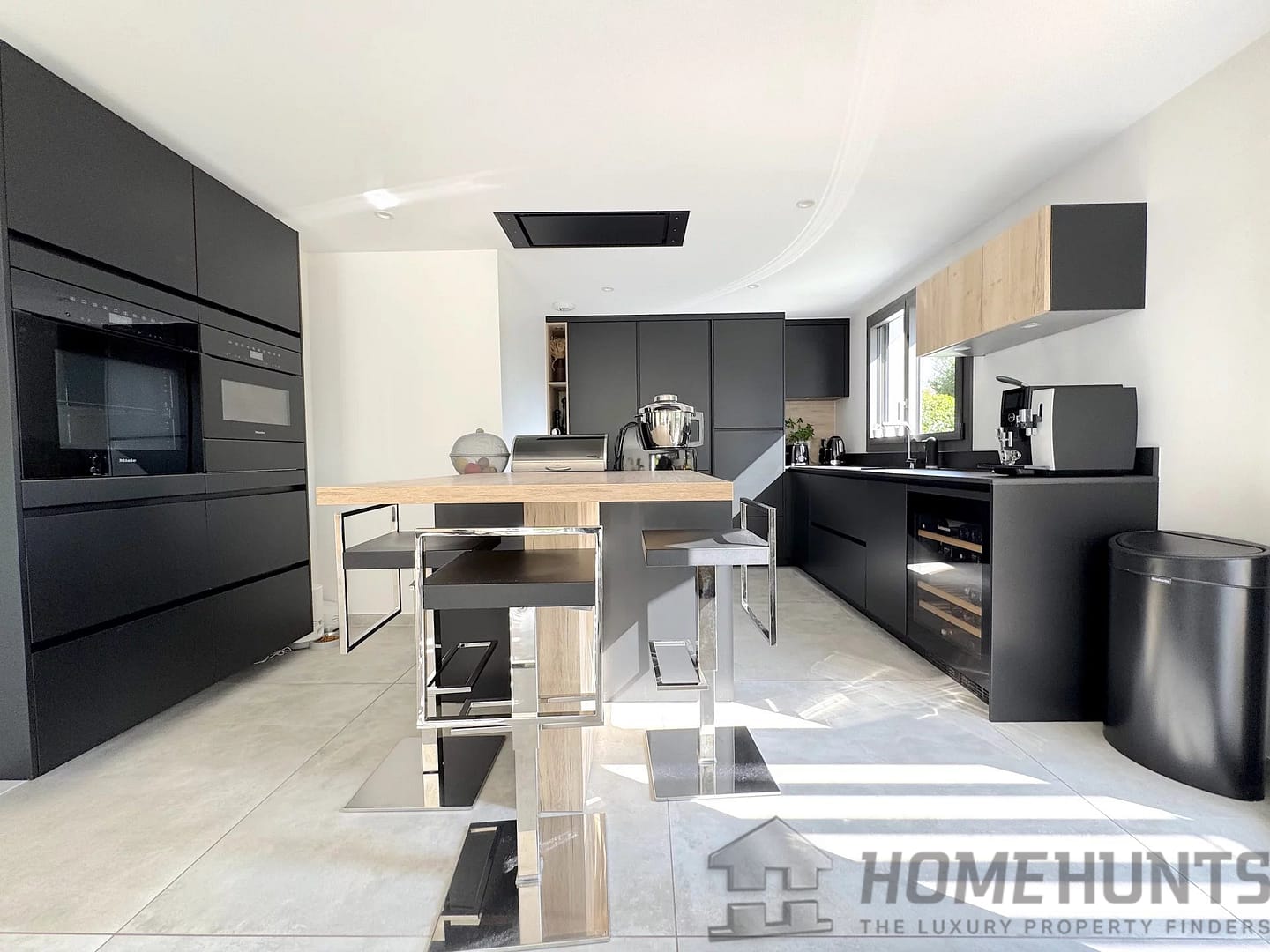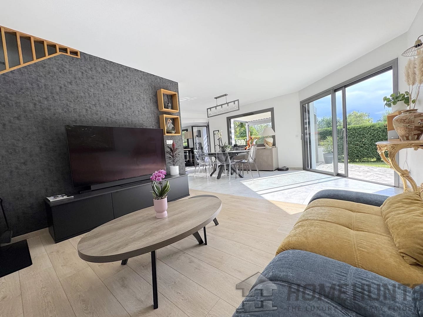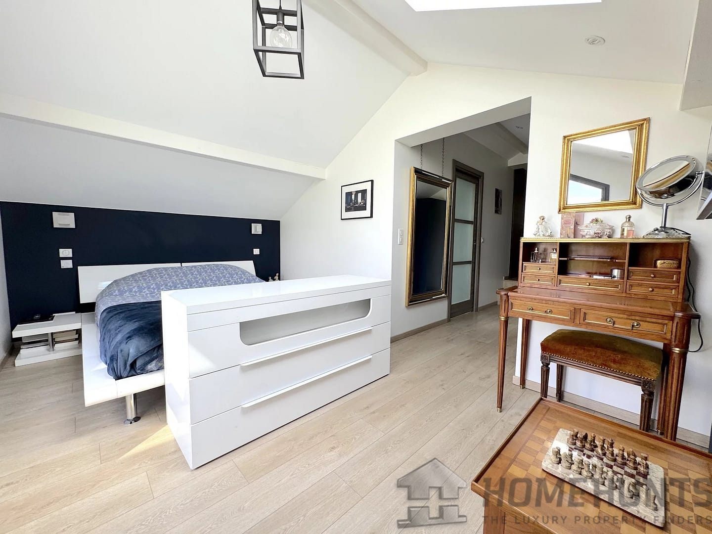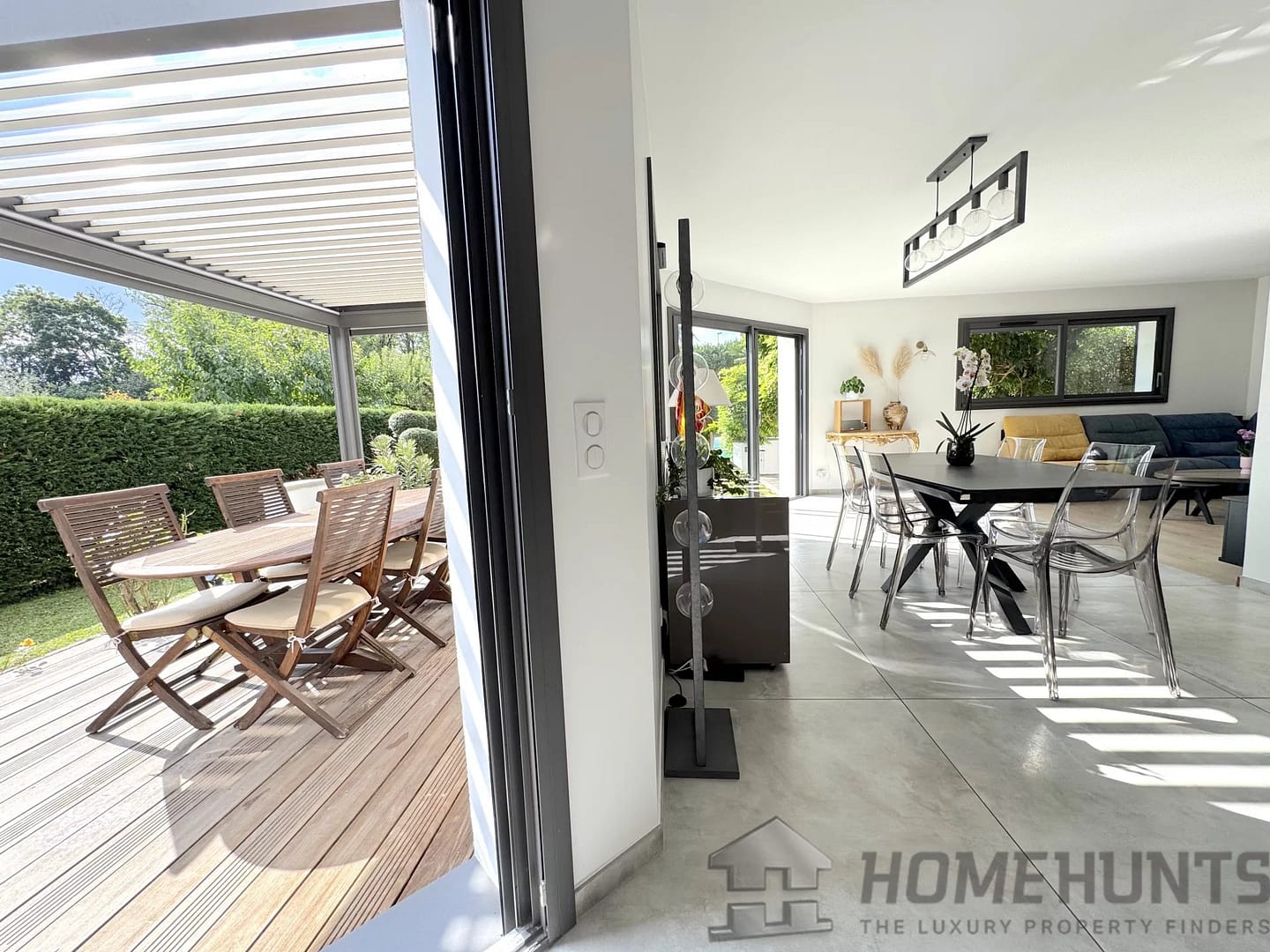 Featuring 5 bedrooms, it comprises a living room (kitchen, dining room and lounge) of almost 44 m2 opening onto a large terrace with pergola. The garden level also accommodates a bedroom with bathroom and several annexes for maximum comfort: games room, laundry room, garage with direct access to the house.