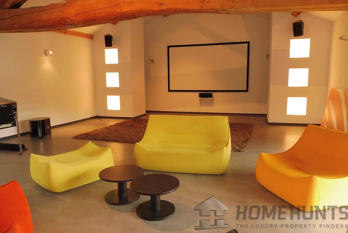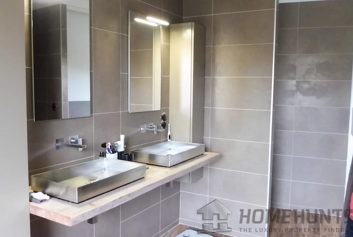 The 1st floor features a master bedroom with bathroom, shower and dressing room; 2 large bedrooms with en-suite shower rooms. And a games room with a home cinema. All the rooms on this level open onto a passageway overlooking the landscaped garden.