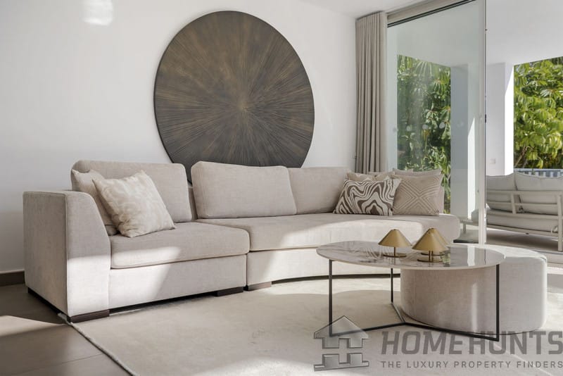 This space is thoughtfully designed to blend seamlessly with the spacious outdoor terrace and pool, creating a natural flow between indoor comfort and outdoor living.