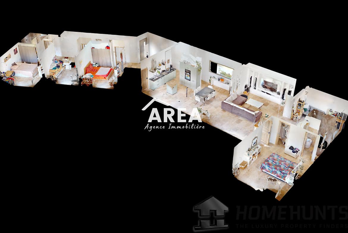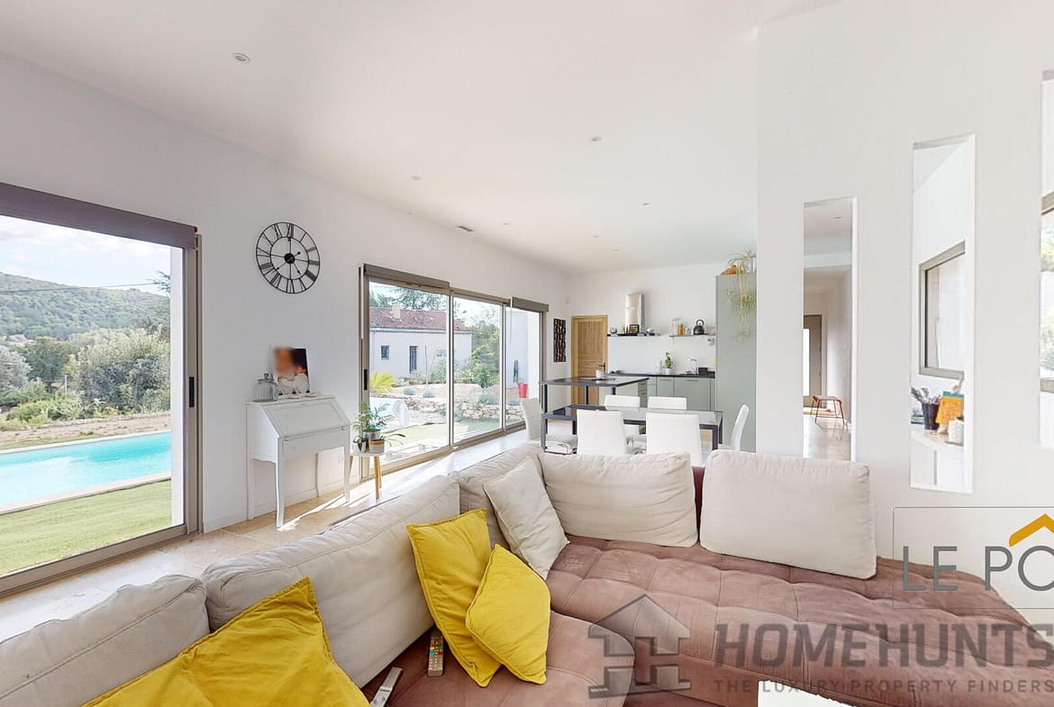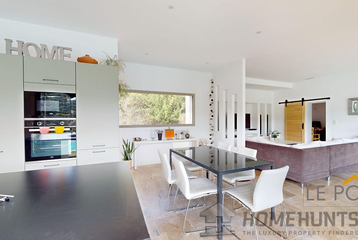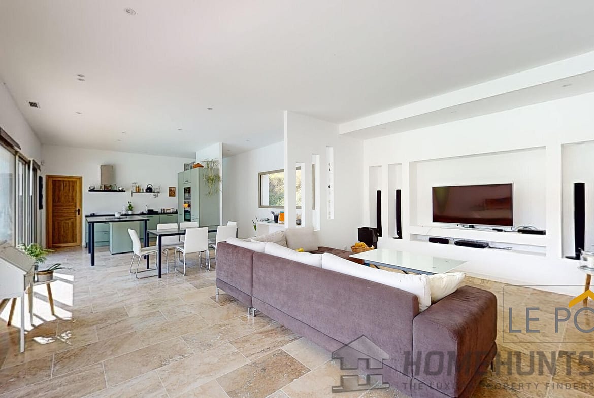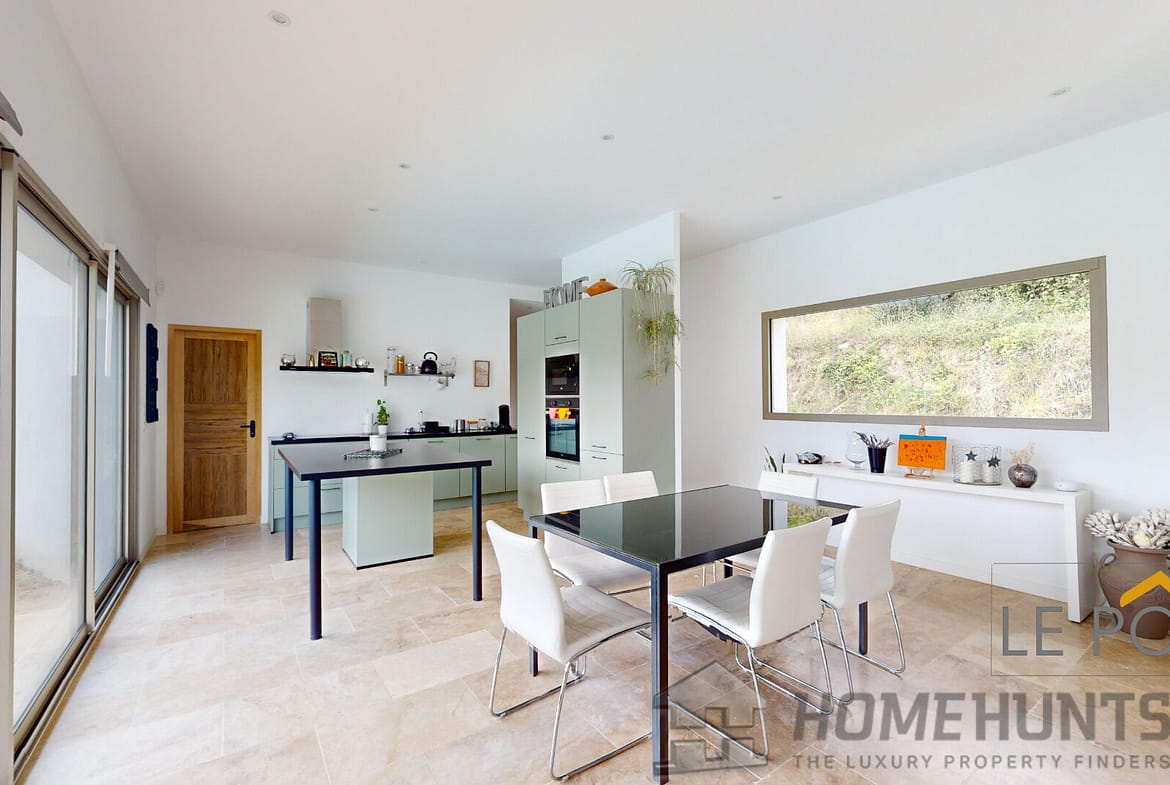 Inside, the villa boasts generous volumes and exceptional light. The living room, which opens onto a modern kitchen, benefits from plenty of natural light thanks to the large picture windows that open directly onto the terrace.