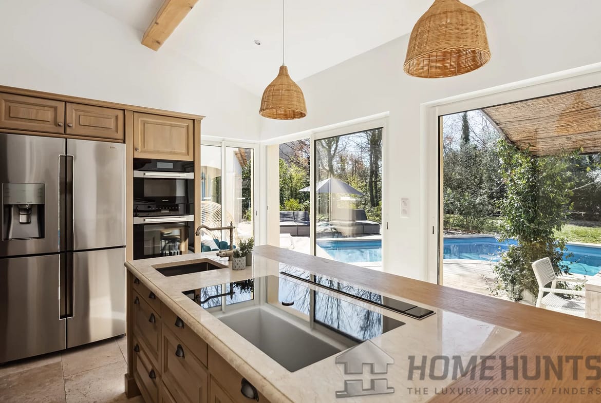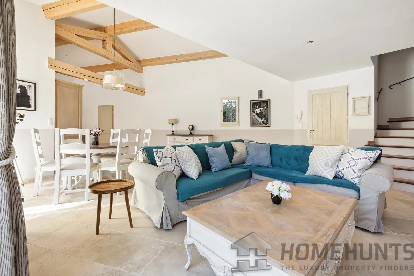 The house comprises a spacious living room with dining area and semi-open kitchen, all opening onto several terraces overlooking the pool and a beautiful flat terrain, on the ground floor, there is also an en-suite bedroom with its bathroom and a second bedroom, while upstairs there are two lovely bedrooms and a shower room.