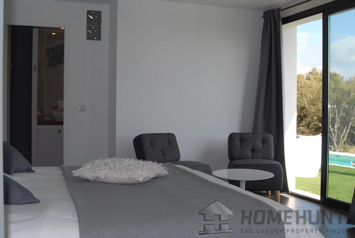 Accommodation comprises a vast living room with fully-equipped open kitchen and dining room opening onto a deep terrace with breathtaking views, a bedroom with en-suite shower room and a master bedroom with en-suite bathroom.