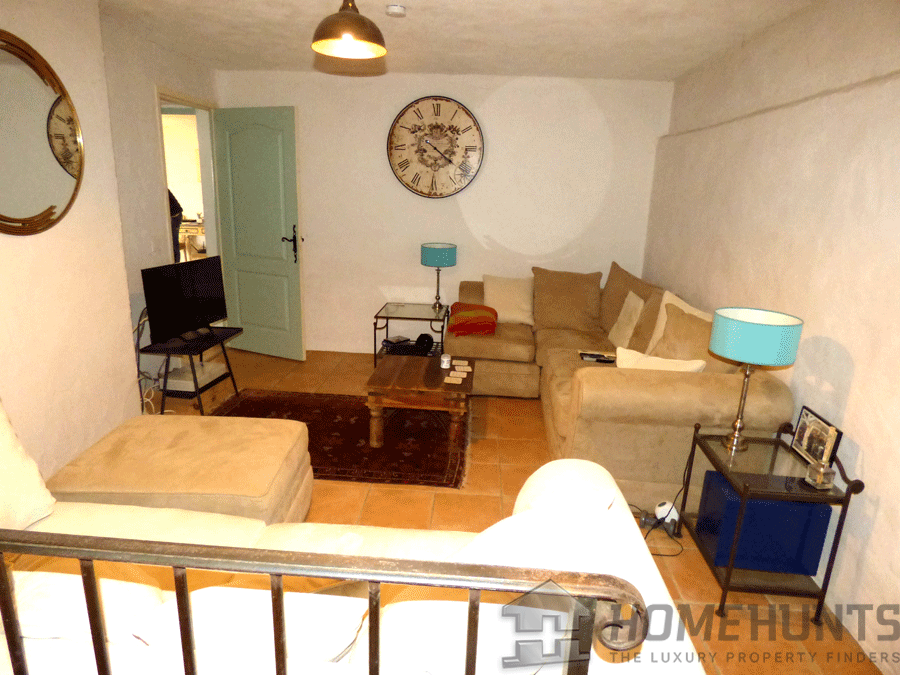 A welcoming entrance leads into an expansive living area with a feature fireplace, opening onto a sun-drenched terrace- perfect for relaxation or entertaining. The fully fitted kitchen with a dining area extends onto a covered terrace, ideal for enjoying alfresco meals with scenic views. This level also features a utility room, a cosy TV lounge, and a spacious bedroom with direct terrace access, along with a stylish bathroom and a guest WC.