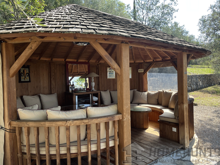 Adding to its charm, the property features a beautiful wooden summer house, a perfect retreat for relaxing in the shade while enjoying the peaceful surroundings. With its comfortable built-in seating, ambient lighting, and rustic charm, this charming garden pavilion offers an ideal spot for afternoon drinks or evening gatherings.