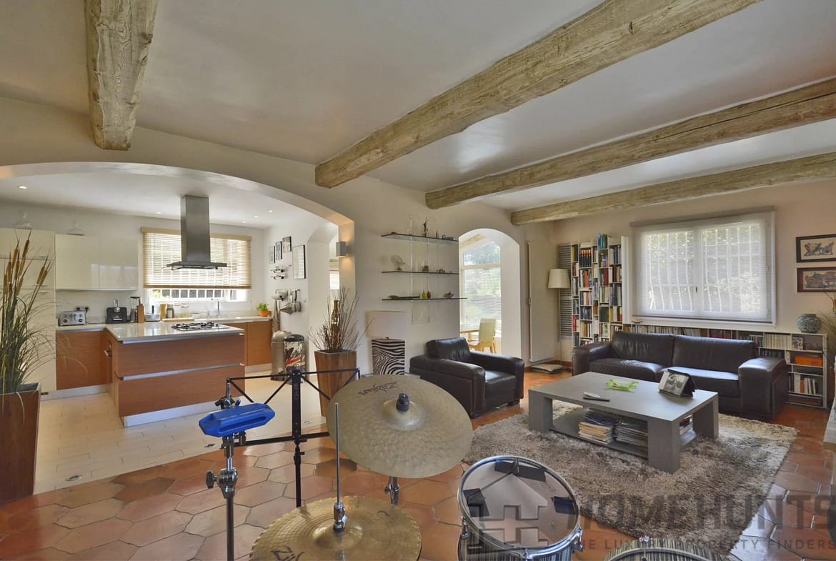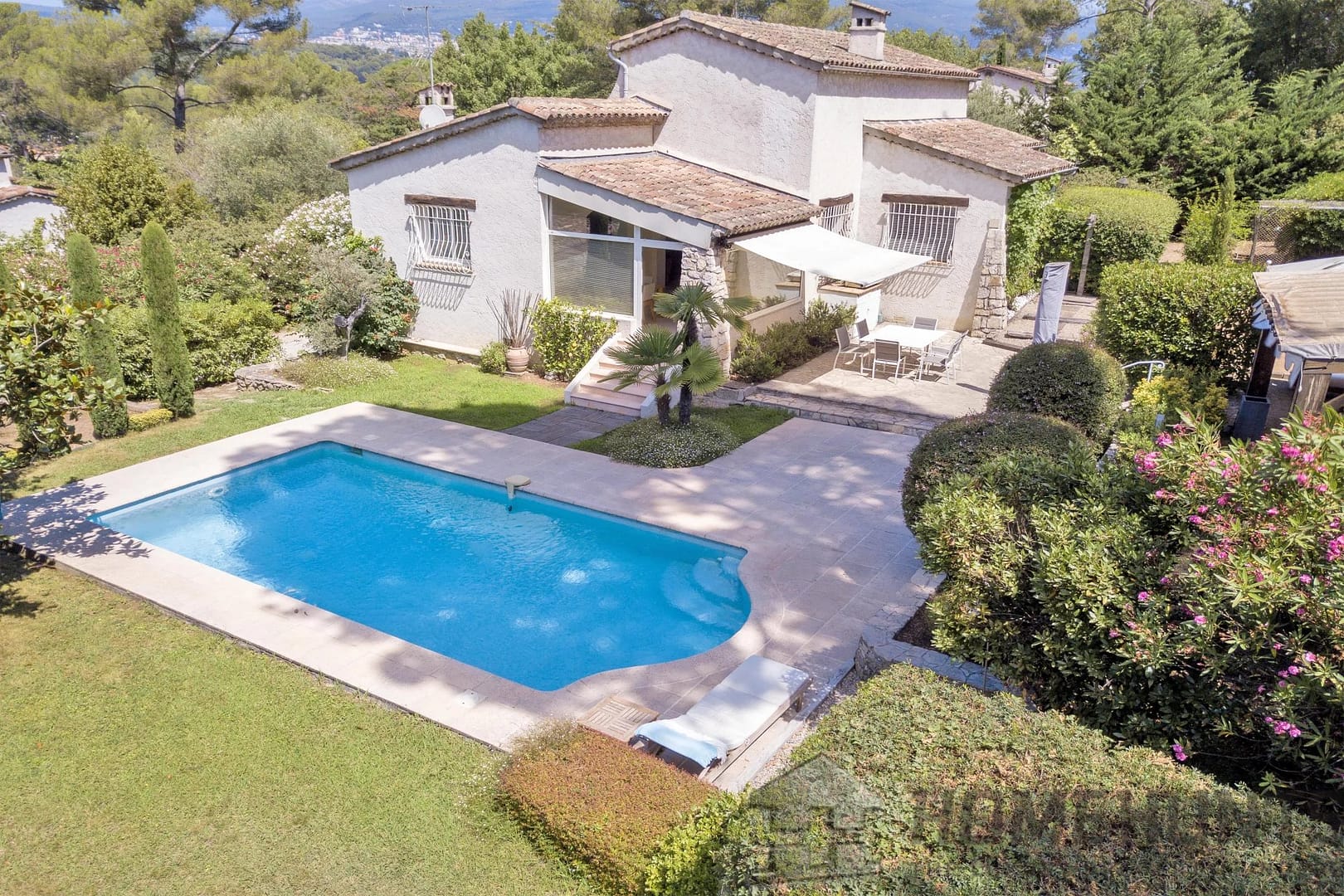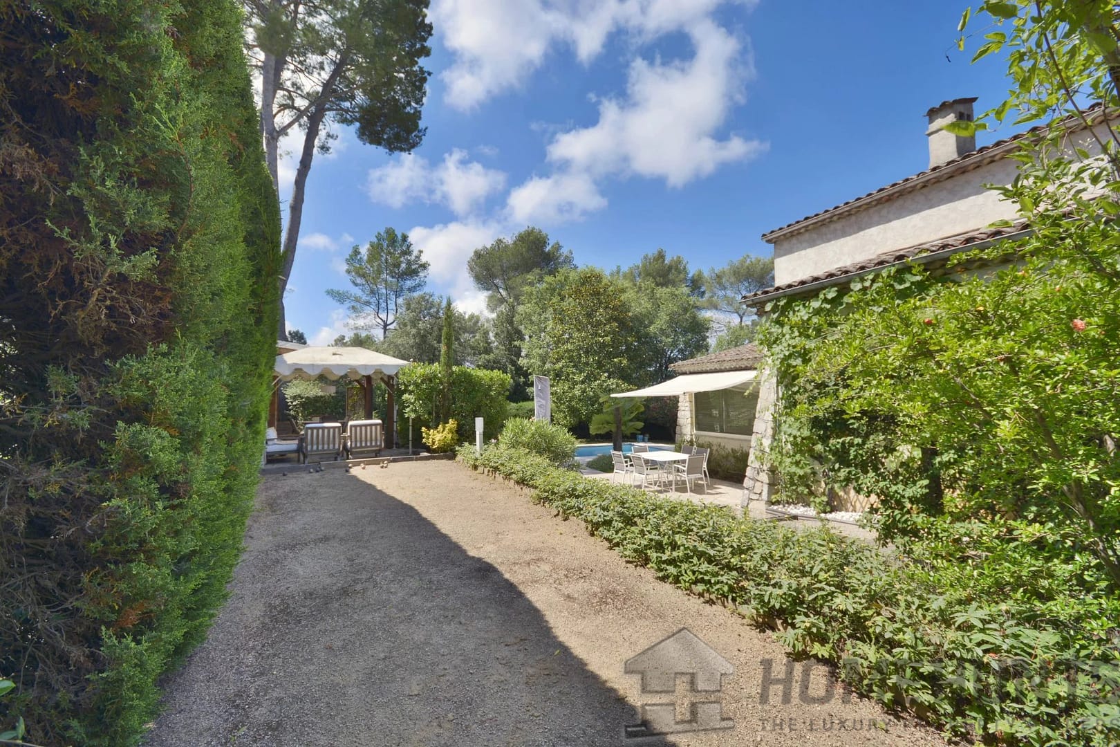 Landscaped garden of about 1570 m2 with a lovely pool area, exterior terraces and a petanques court.