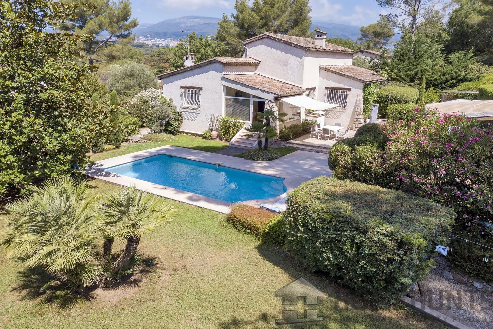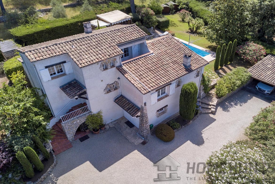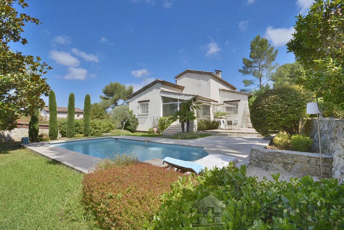 Mouans-Sartoux : situated in a quiet residential neighborhood, within walking distance to the center, beautiful renovated Provencal-style villa with an open view.