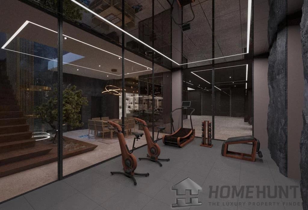 It features a spacious living area, a professional kitchen, five suites and a range of high-end amenities, including an outdoor swimming pool, indoor swimming pool, hammam, spa, sauna, pool house, cinema room and a garage with space for six vehicles.