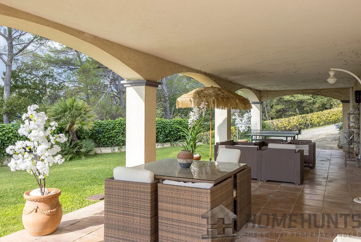 Located in a peaceful setting, this superb property enjoys panoramic views to the sea, the Esterel mountains, and the surrounding hills.