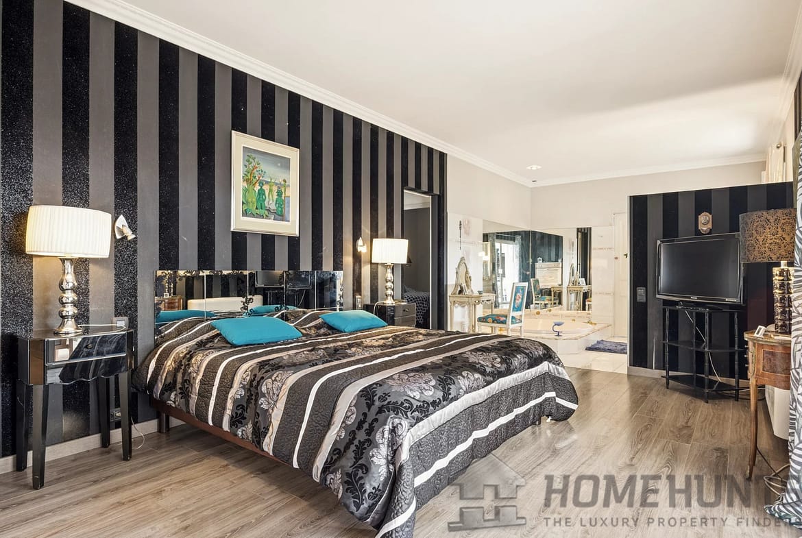 The villa is spread over three levels. The ground floor features a large, bright 95 m2 living room, a kitchen opening onto a beautiful terrace, as well as a master suite and a second independent suite. It is possible to combine these two spaces to create a very large master suite comprising a bedroom, two bathrooms, and a double dressing room. On the upper floor there is an office with a terrace and a large games room with an attic. The garden level has four bedrooms, including one suite, and an additional bathroom.