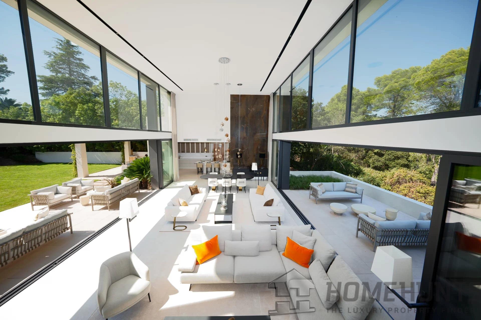 It offers on three floors : a double and very bright cathedral living room with 6 meters under ceiling, fully glazed, dining room, kitchen, a master bedroom with bathroom and dressing en suite, 4 bedrooms with shower room en suite, fitness room, sauna, cinema room, games room, wine cellar.