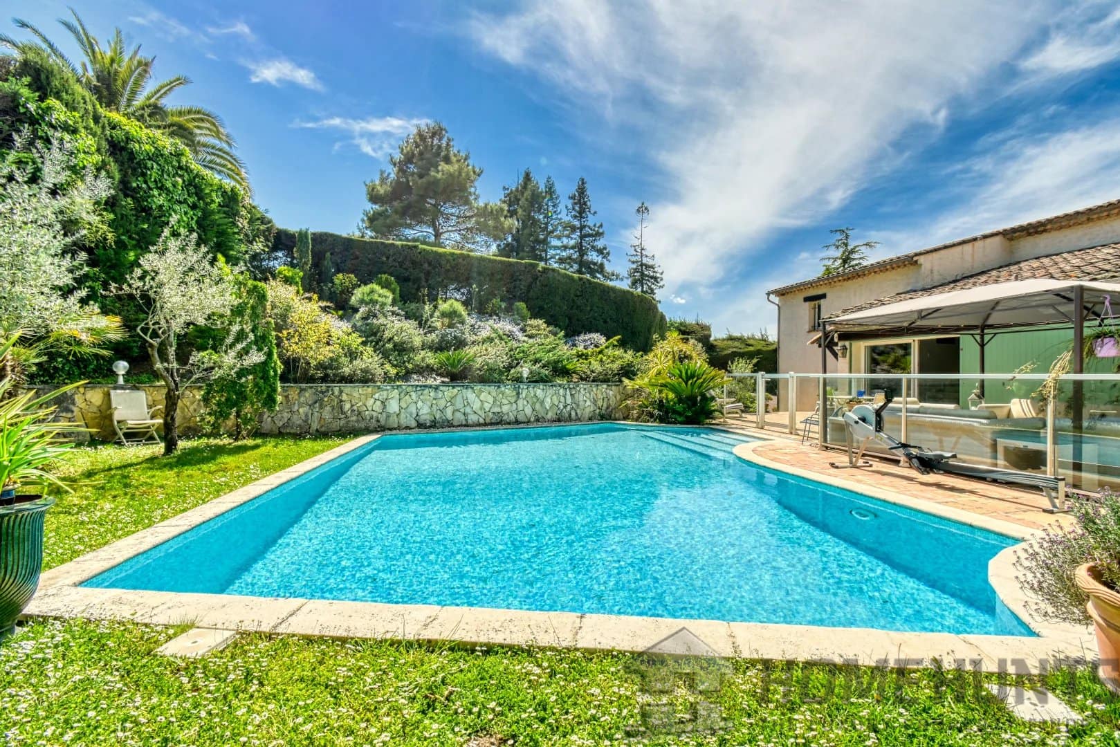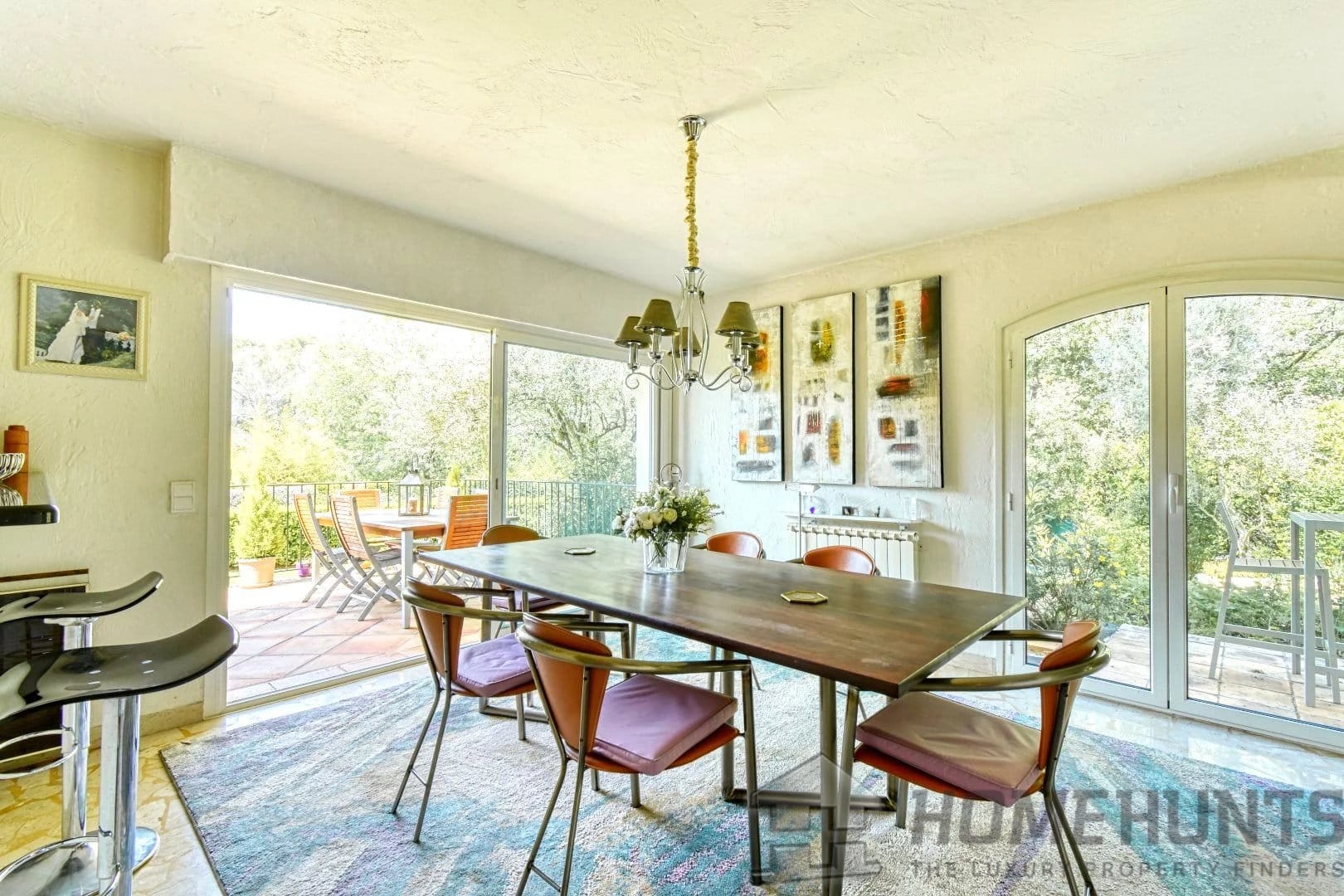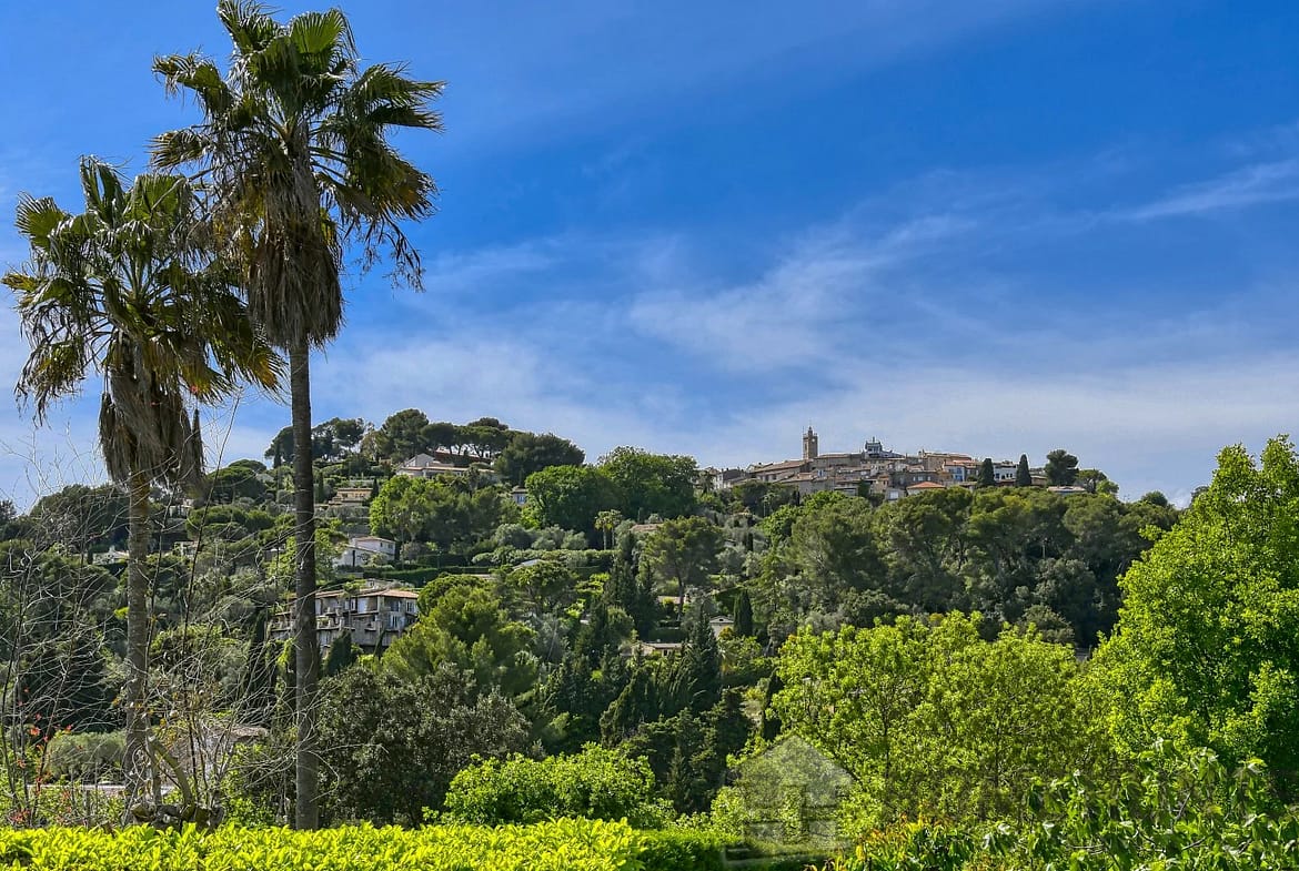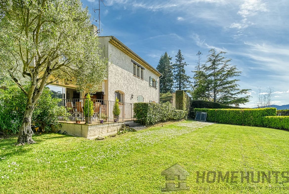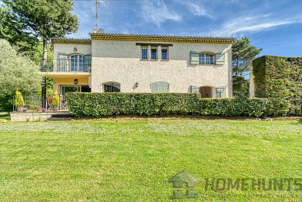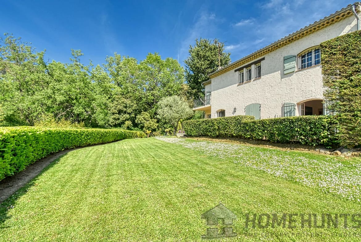 Charming villa of 180 m2 built upon a superb a flat fully landscaped plot dotted with large lawns, olive trees and other Mediterranean essences of 2016 m2 with a magnificent view of the old village of Mougins, situated in a private and closed estate.