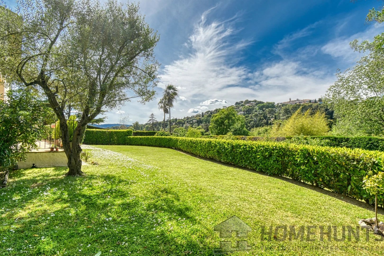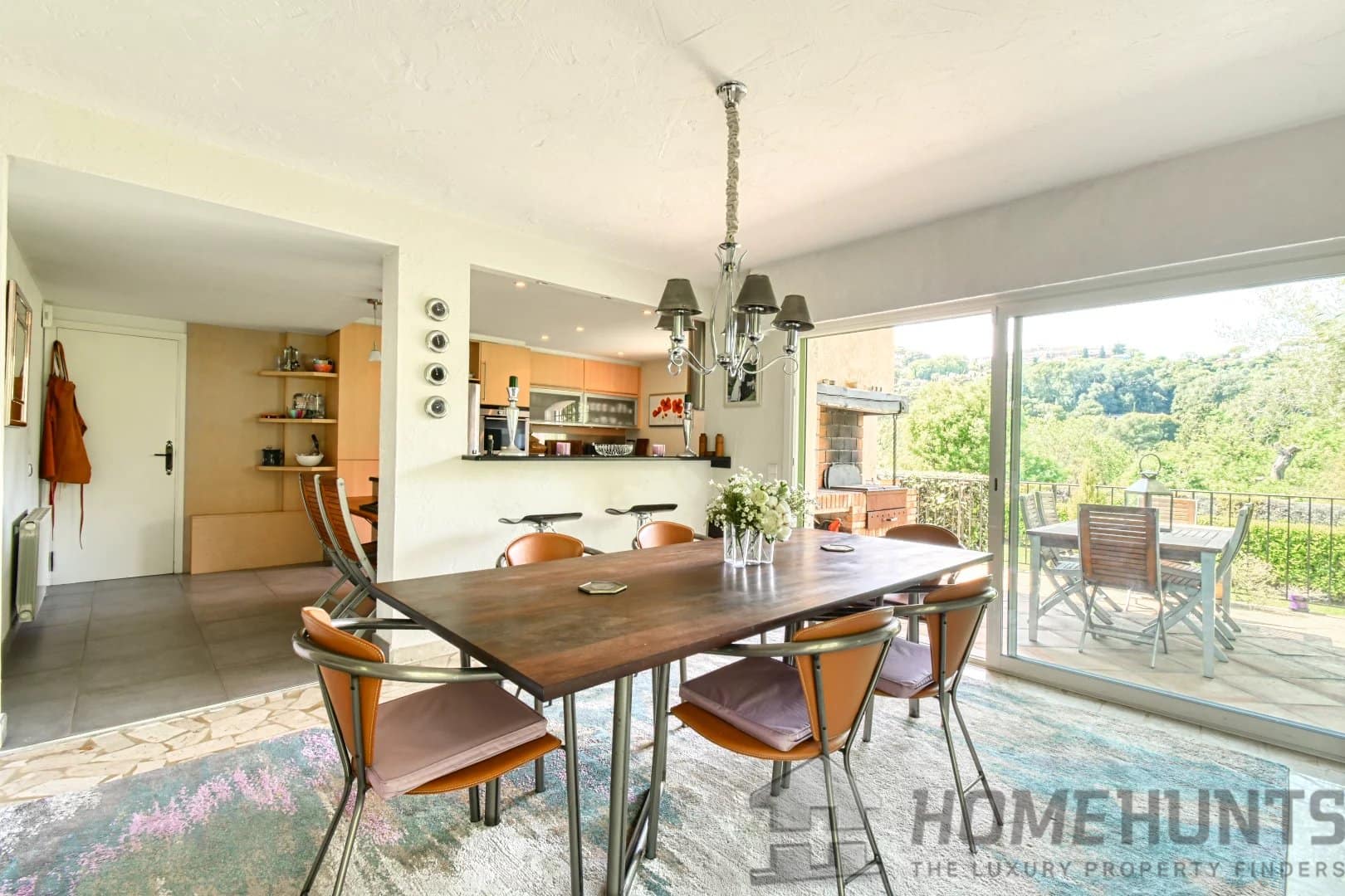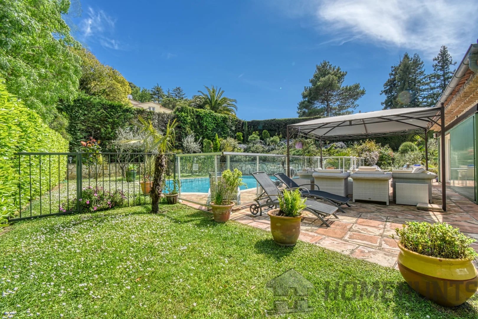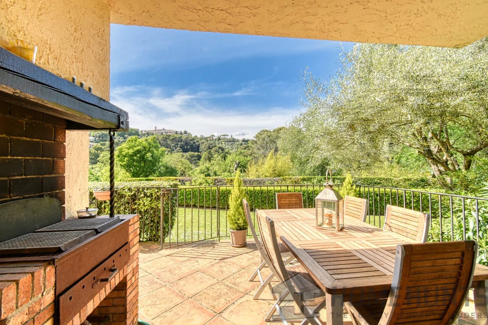 Charming villa of 180 m2 built upon a superb a flat fully landscaped plot dotted with large lawns, olive trees and other Mediterranean essences of 2016 m2 with a magnificent view of the old village of Mougins, situated in a private and closed estate.