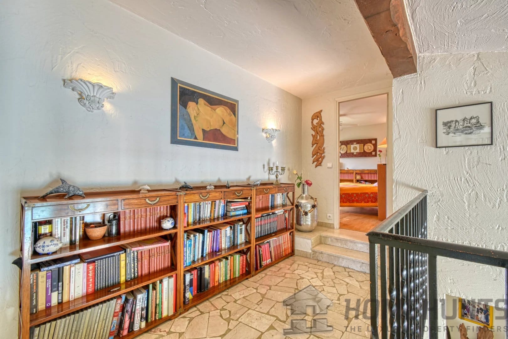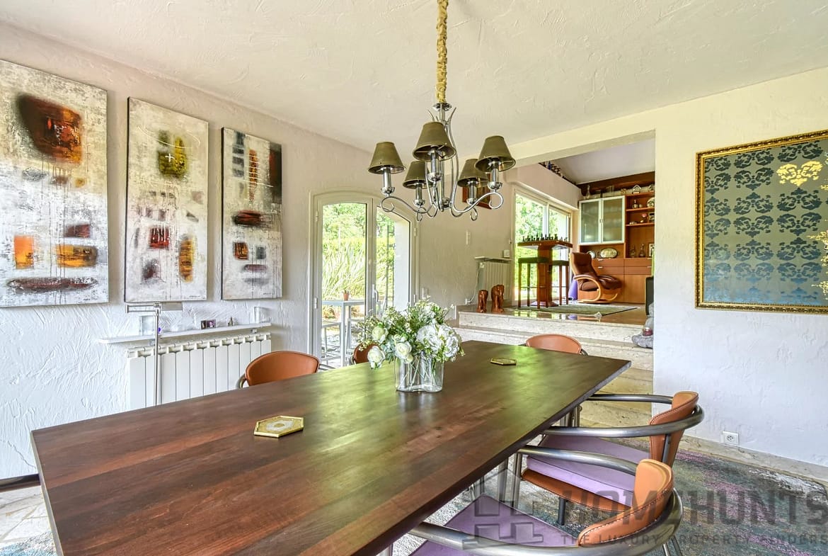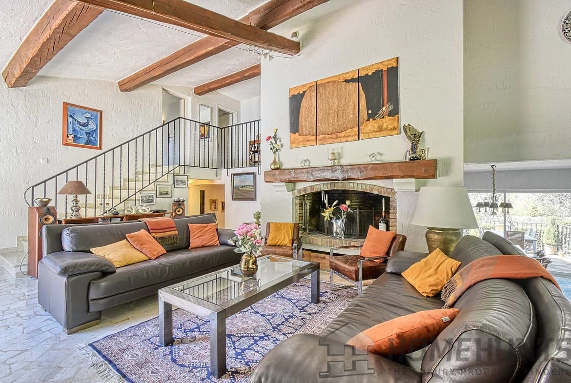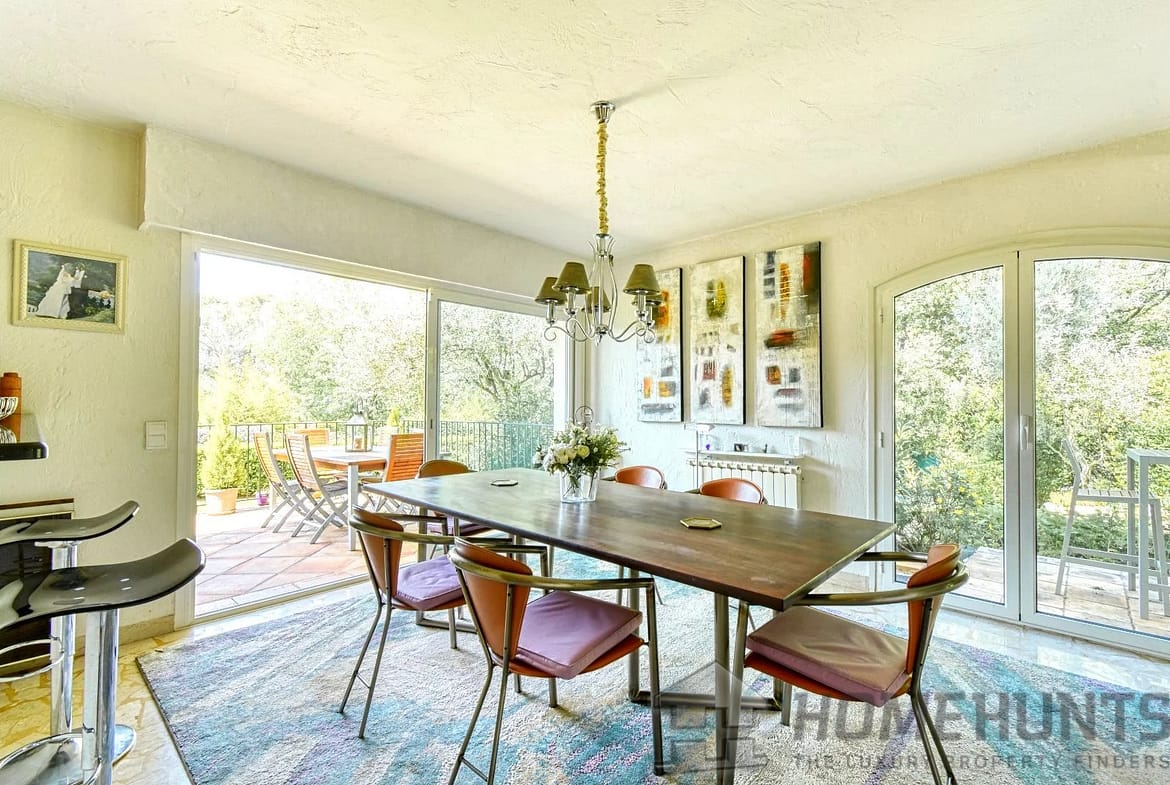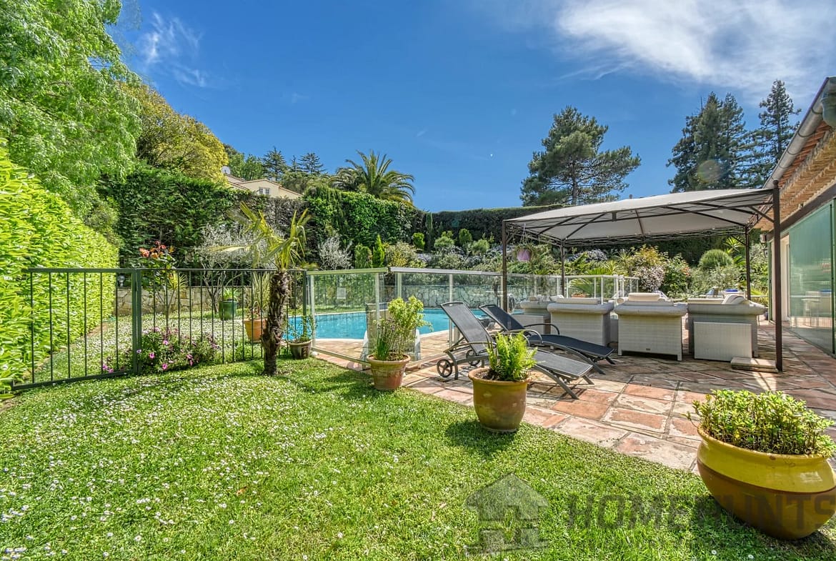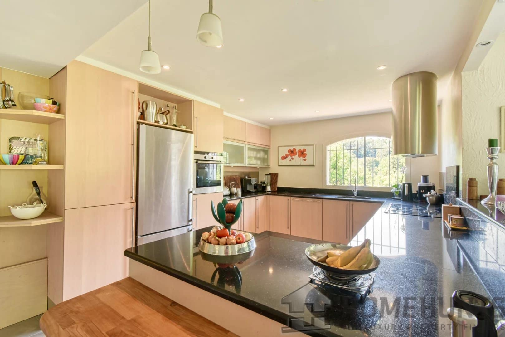 Charming villa of 180 m2 built upon a superb a flat fully landscaped plot dotted with large lawns, olive trees and other Mediterranean essences of 2016 m2 with a magnificent view of the old village of Mougins, situated in a private and closed estate.