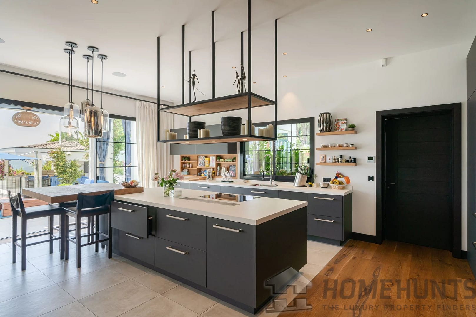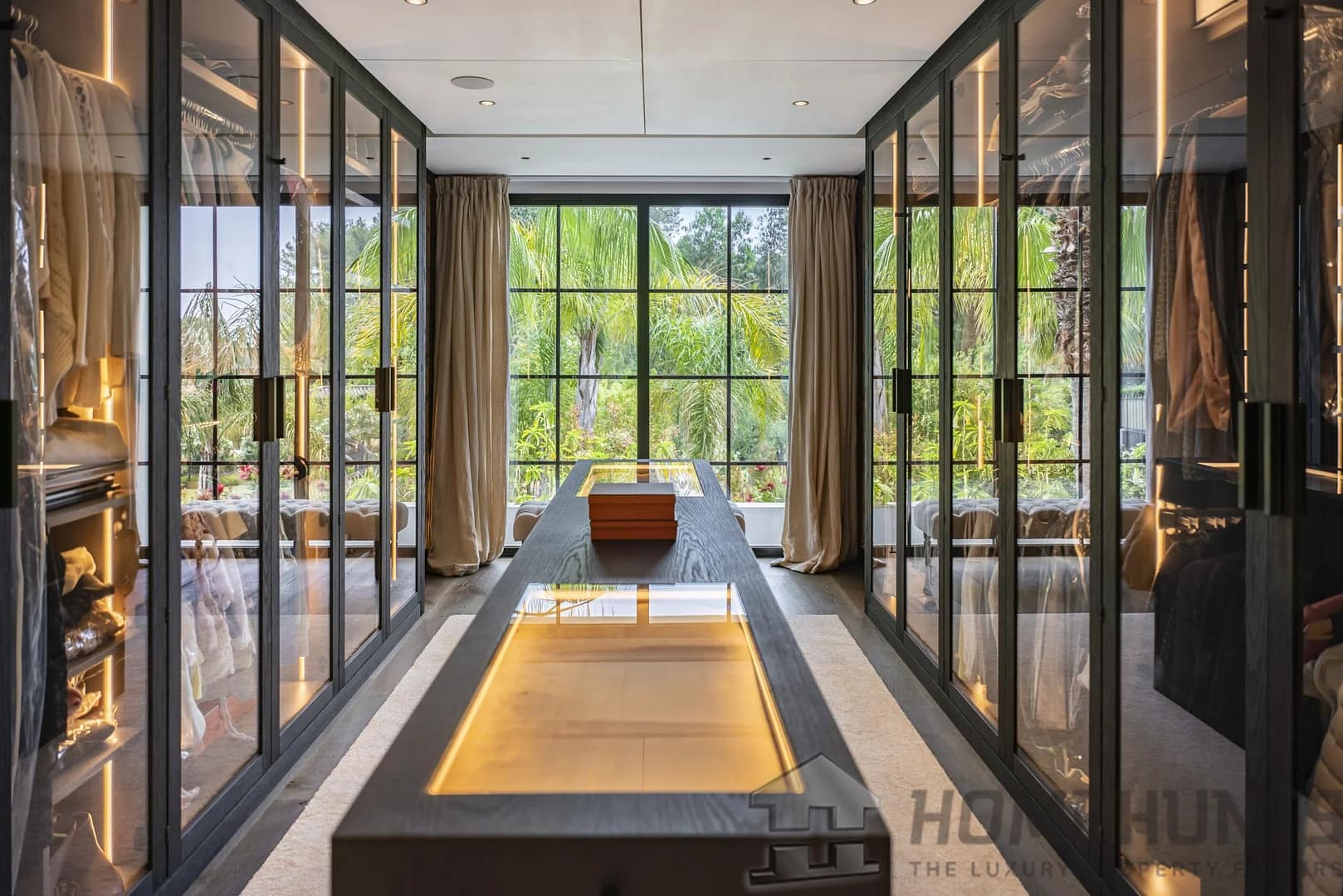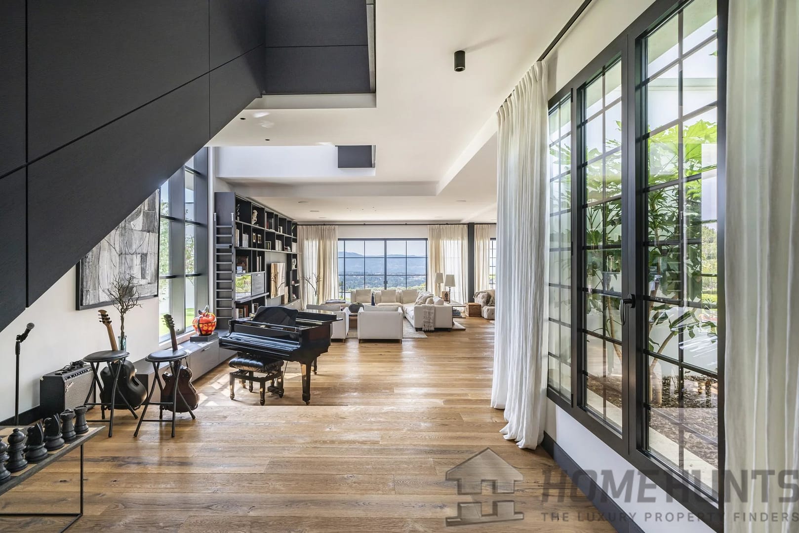Featuring soaring ceilings and expansive windows throughout, the villa embraces an open-concept design, exuding an air of American grandeur.
