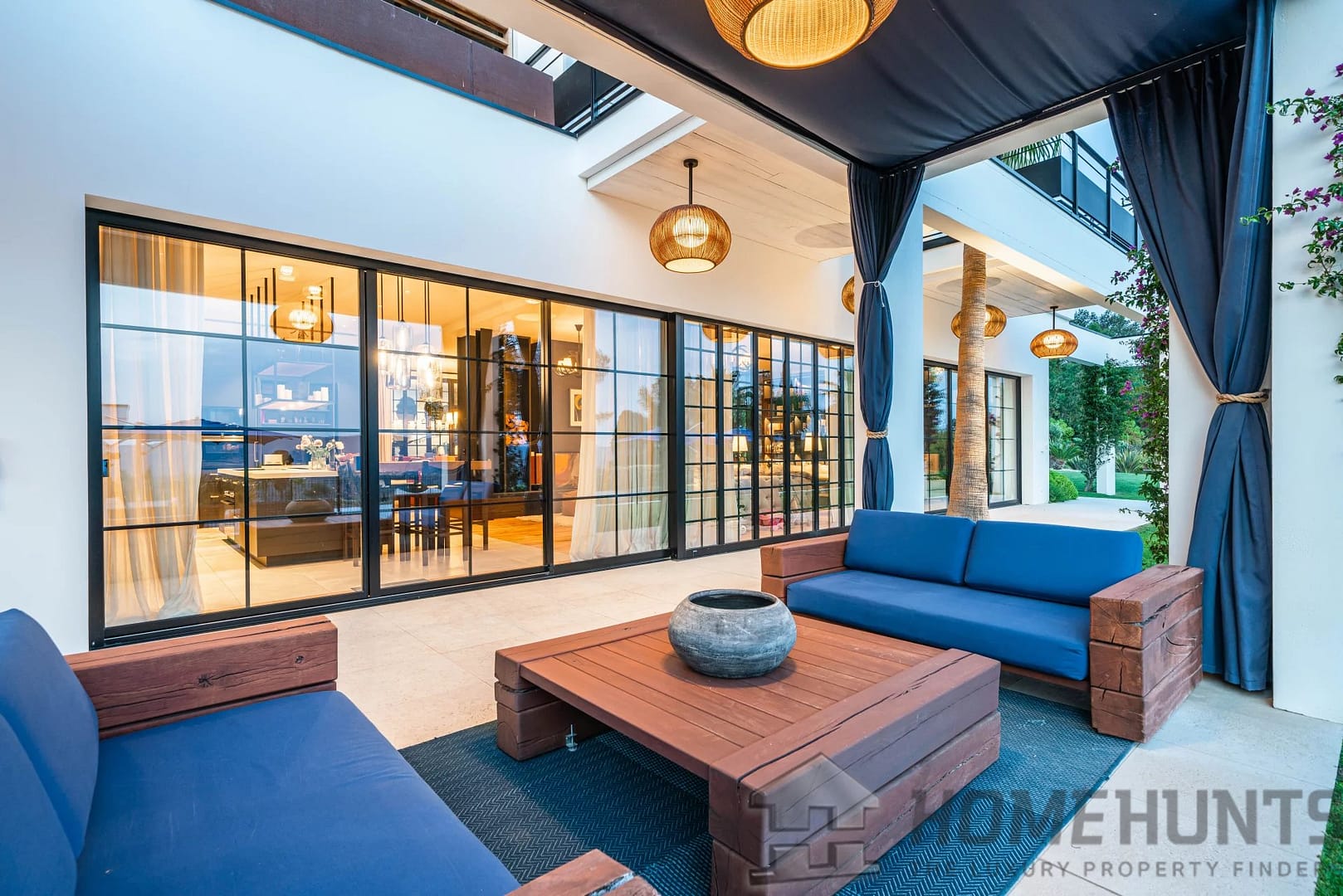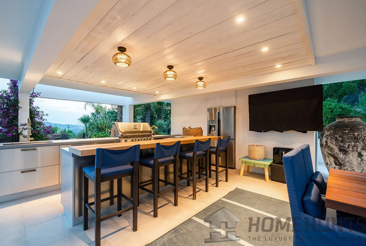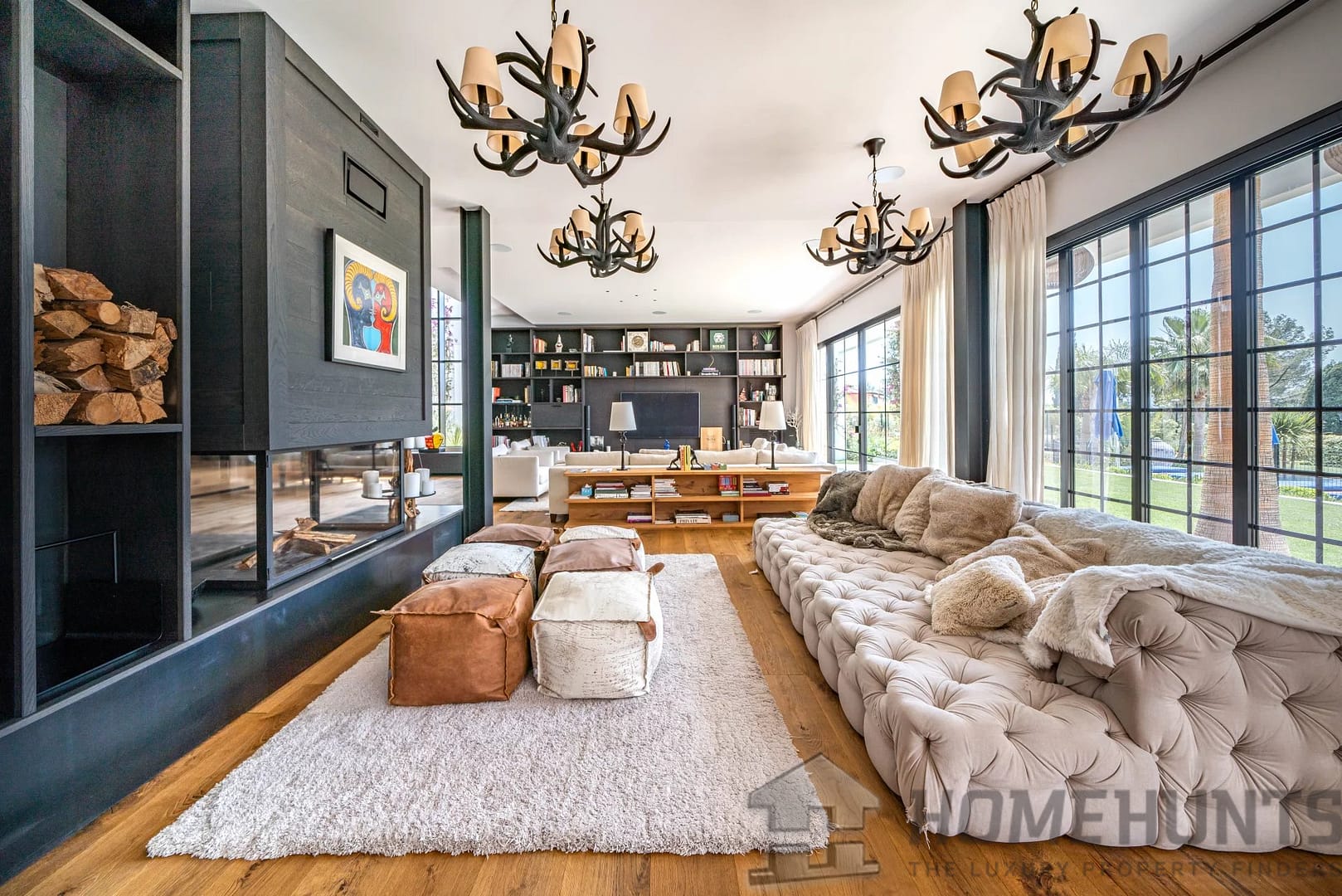 Featuring soaring ceilings and expansive windows throughout, the villa embraces an open-concept design, exuding an air of American grandeur.