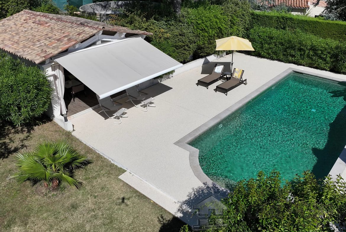 Flat landscaped grounds of 2,500m2, swimming pool, poolhouse with fully fitted and equipped summer kitchen, lounge/dining room leading onto a terrace and opening onto the garden plus another beautiful terrace of 60m2, partly sheltered.