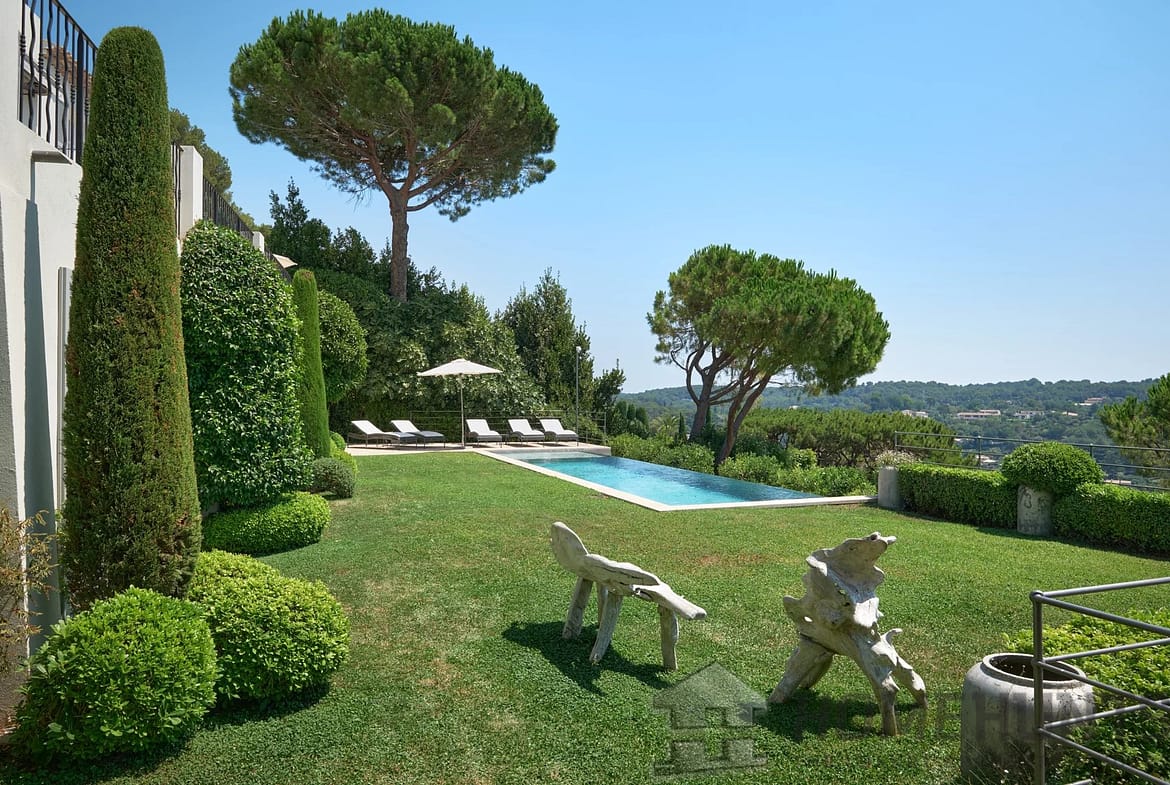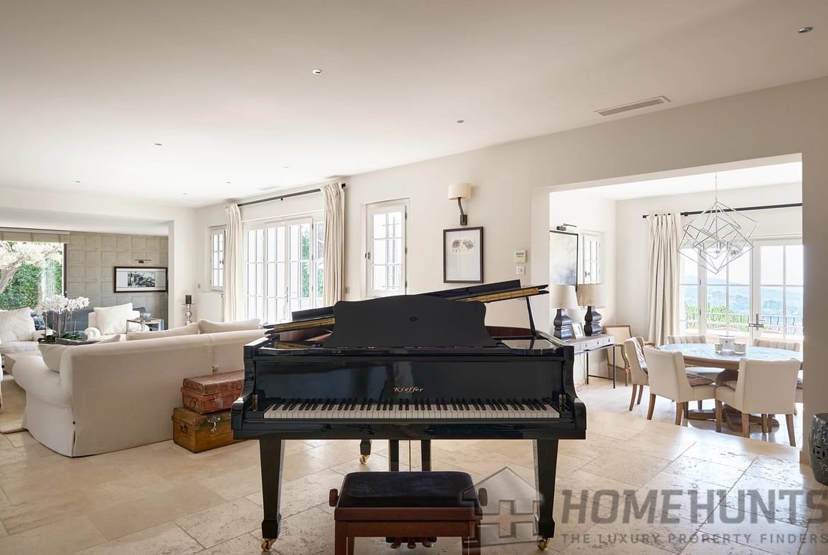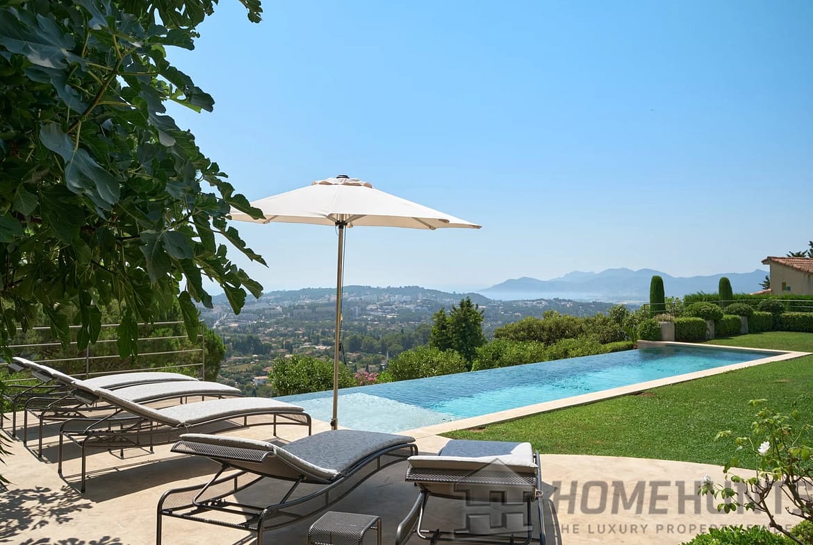 This exceptional property is ideally situated at the top of a famous hill overlooking the Bay of Cannes with panoramic views of the surrounding hills and L’Esterel. The old village of Mougins with its restaurants and art galleries is also just a short stroll away.